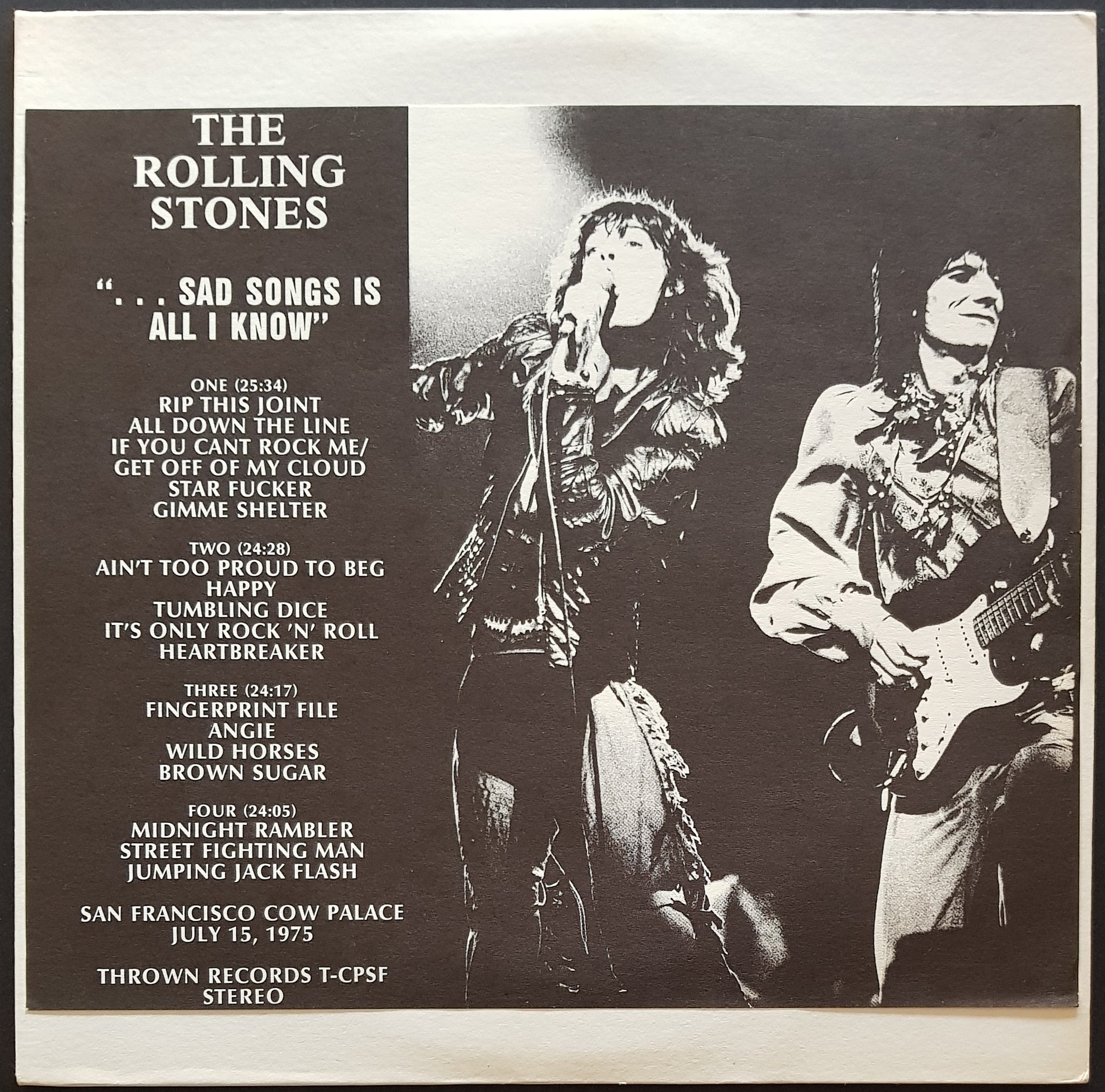 w. Loose Printed B&W Insert Cover Sheet. Silver & Black Thrown Records Labels T-CPSF-A/D. Live San Francisco, Cow Palace July 15, 1975.