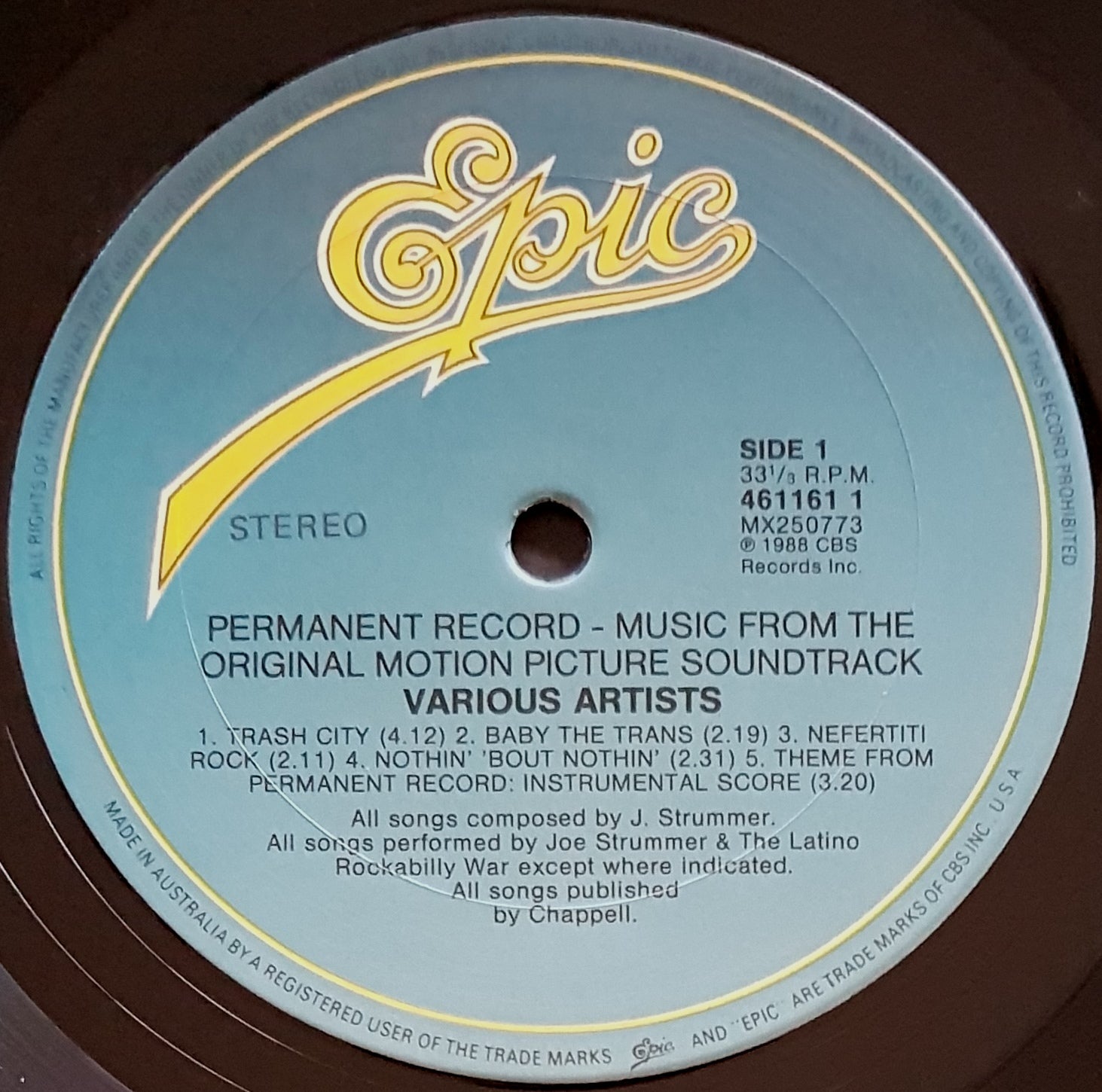 w.Inner. 1988 EPIC 461161 Gold Promo Stamp on Cover. Also Features Joe Strummer & Lou Reed.