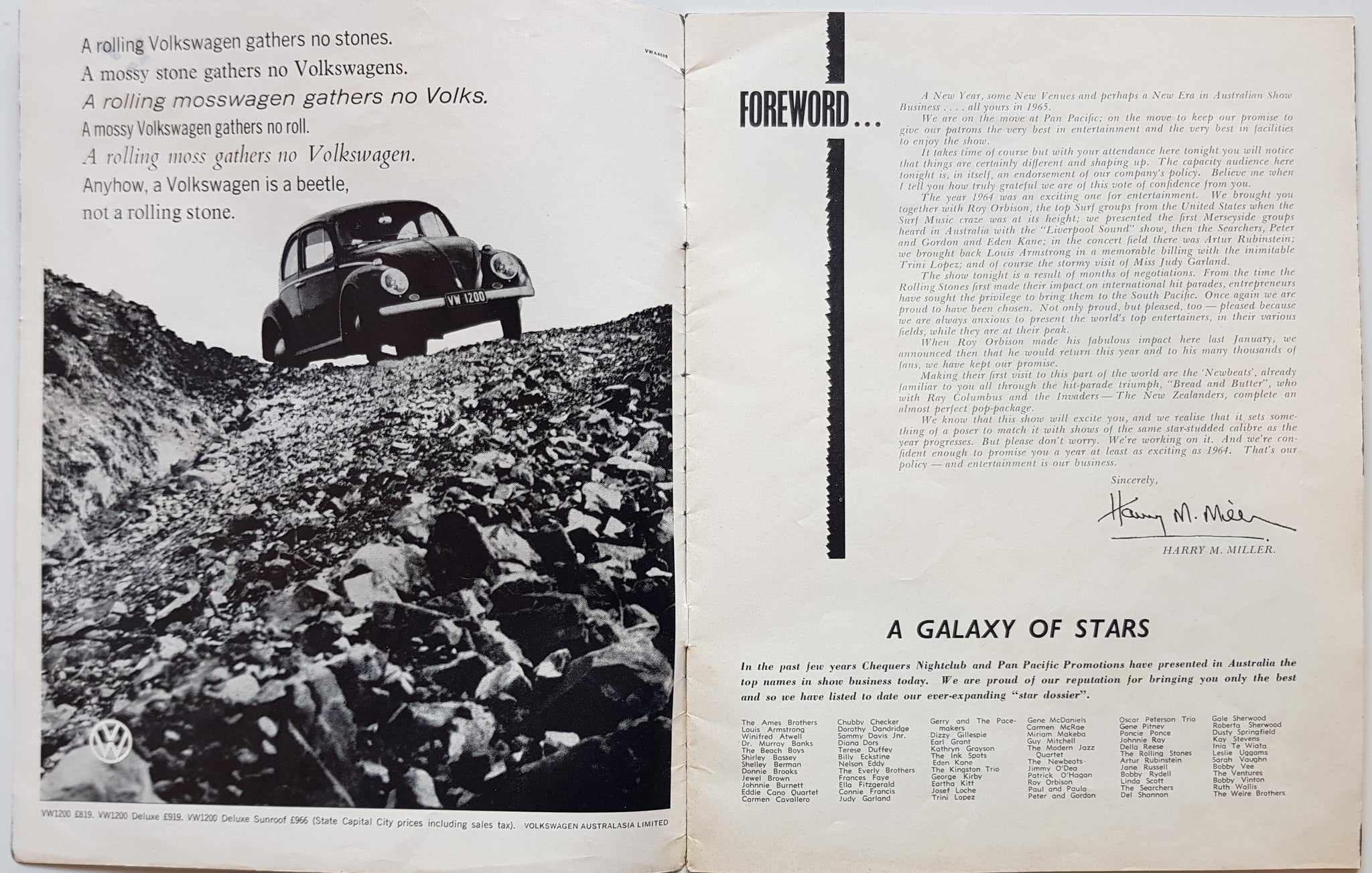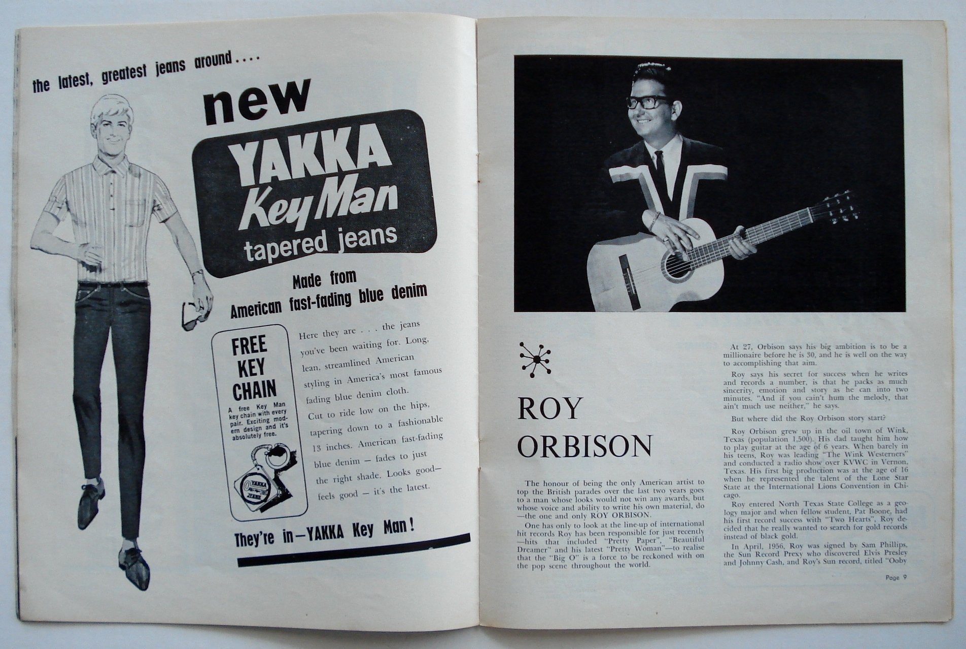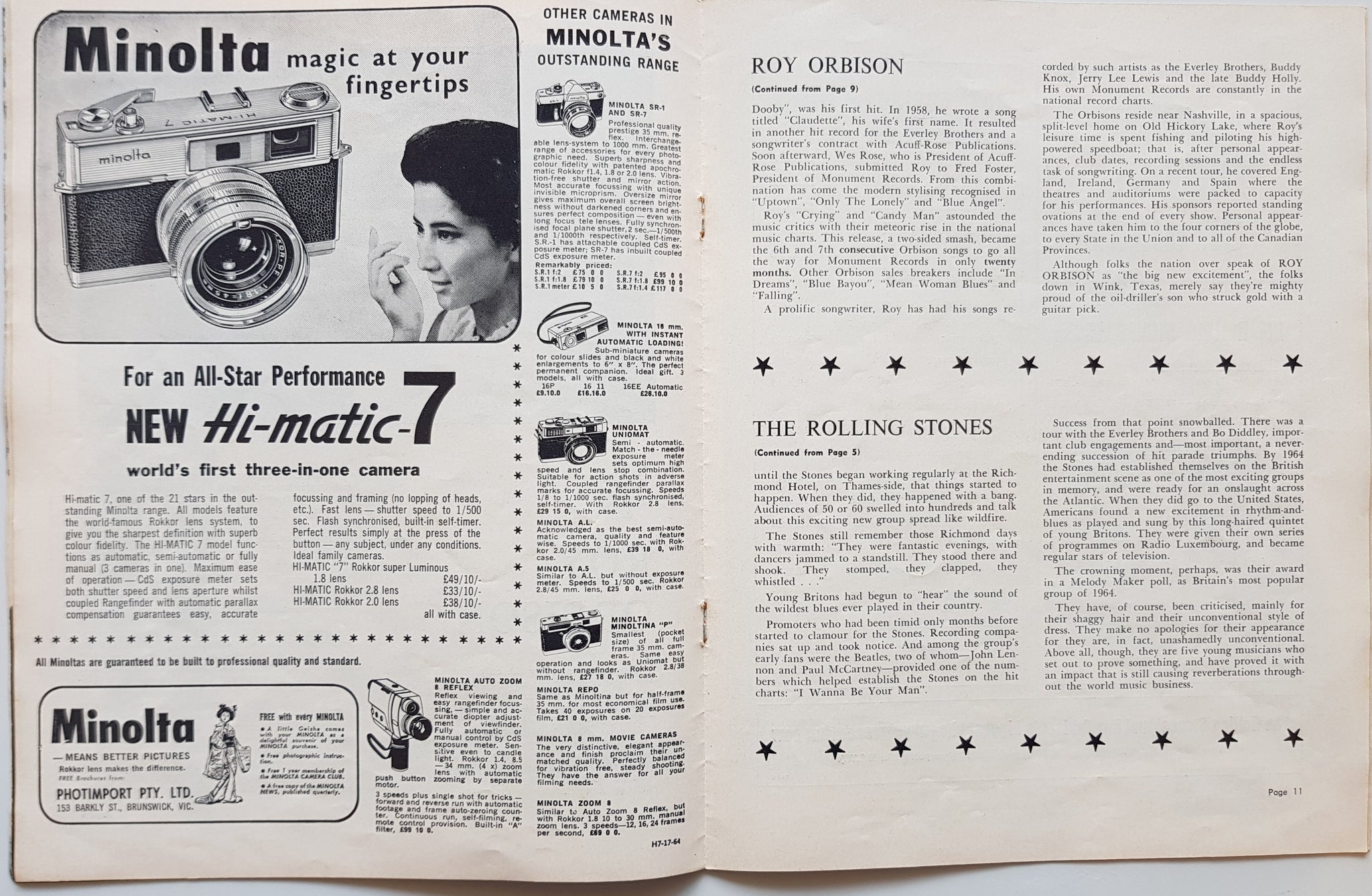 24 pages in all. 1965 Tour w.Roy Orbison, Ray Columbus & The Invaders & The Newbeats. Cover has minor Surface Tear which has Been Touched Up With Black Marker, Otherwise EX.