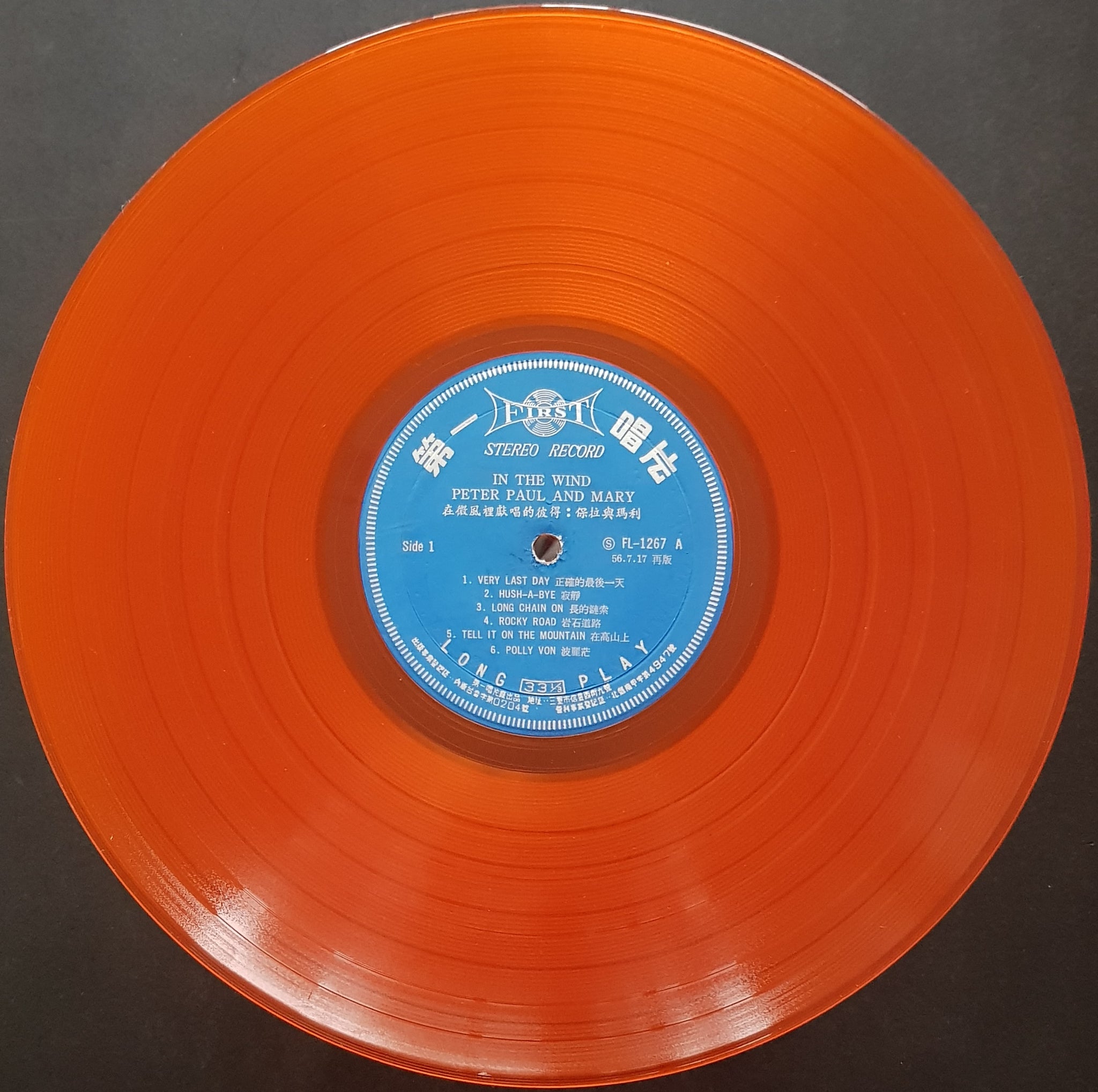 Orange Vinyl w.Unique Paper Cover. Blue & Silver FIRST Records Label FL-1267