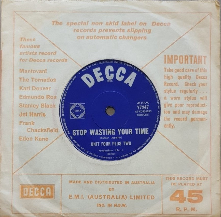 1965 Original DECCA Label Y7247. Price Sticker + Small Stain on Label.