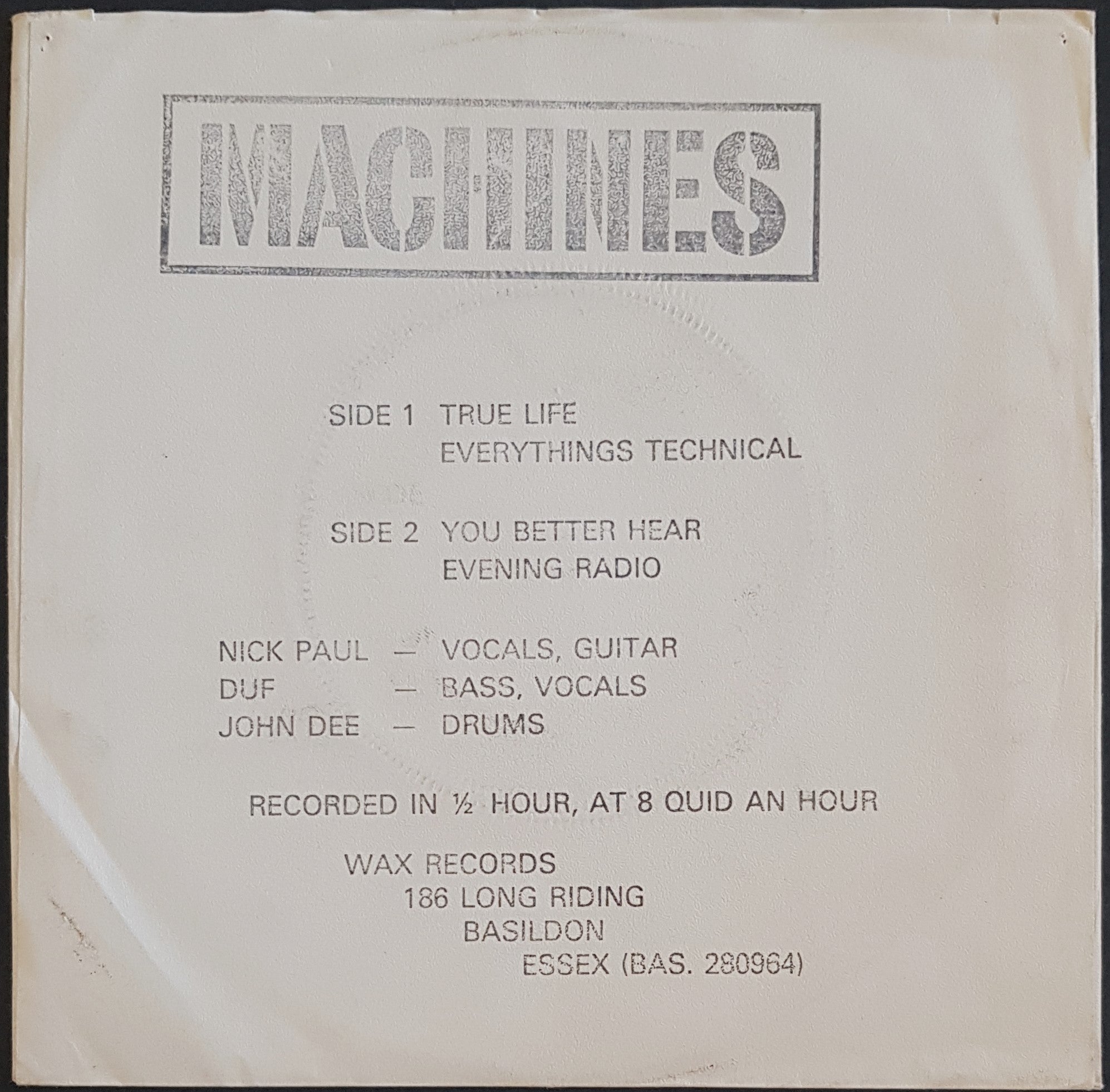 EP PS. 1978 Wax Records EAR 1. 4 small pin holes, small spot of writing on front sleeve which has light handling wear / creases.
