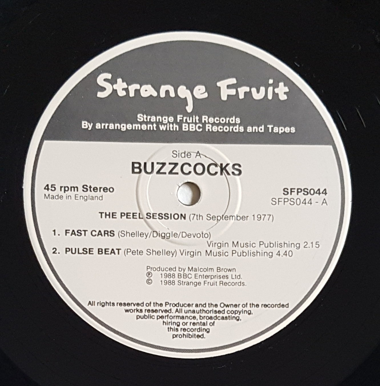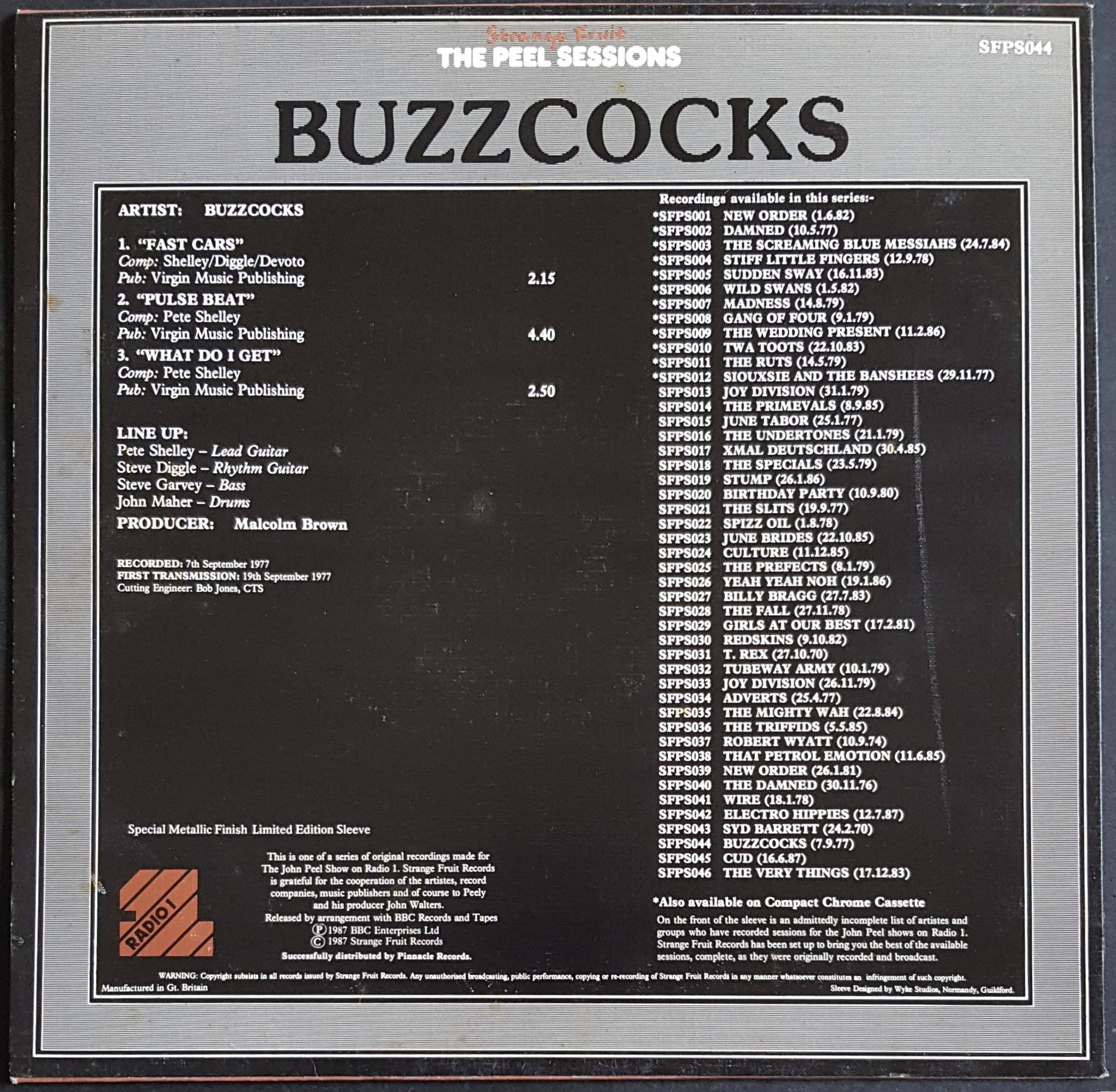 PS. 1988 Strange Fruit SFPS044. Material recorded: 7th September 1977. Foxing and edge wear on cover