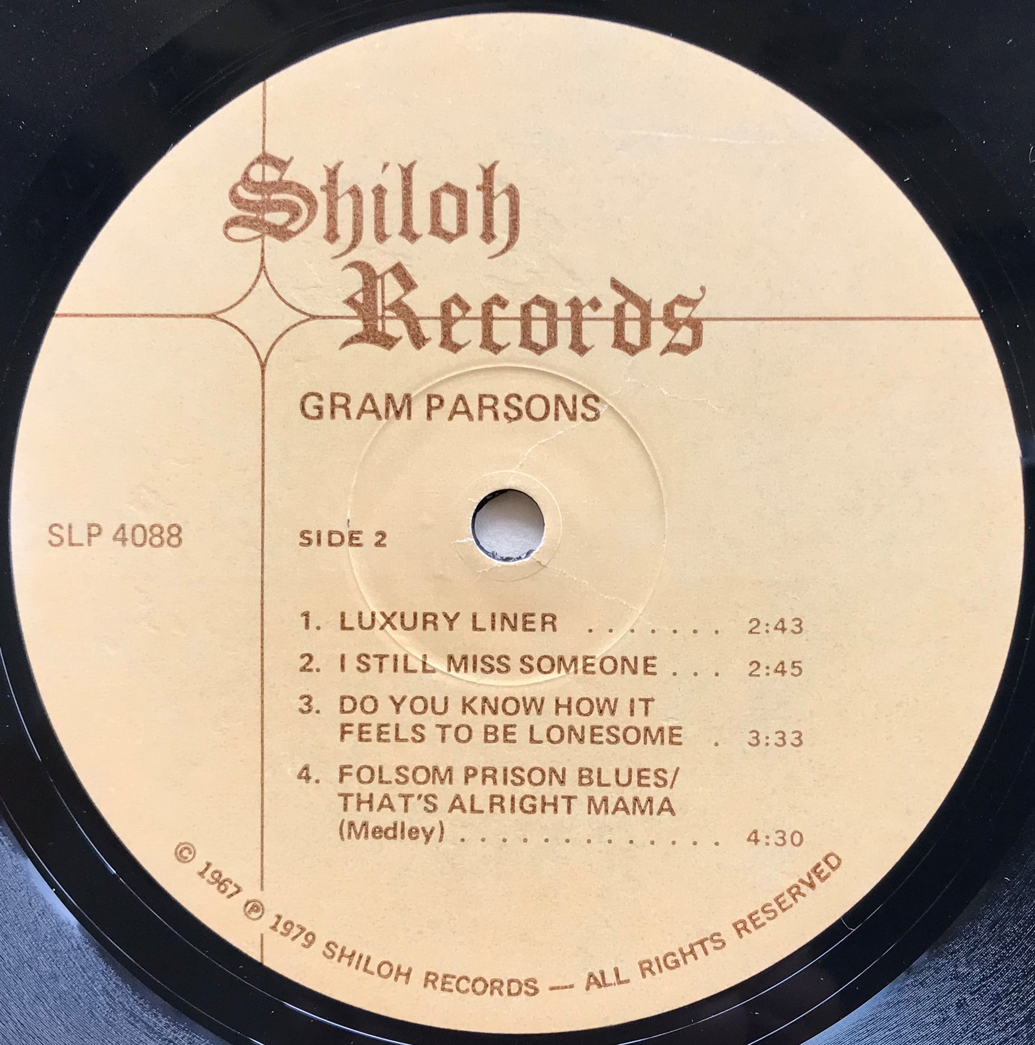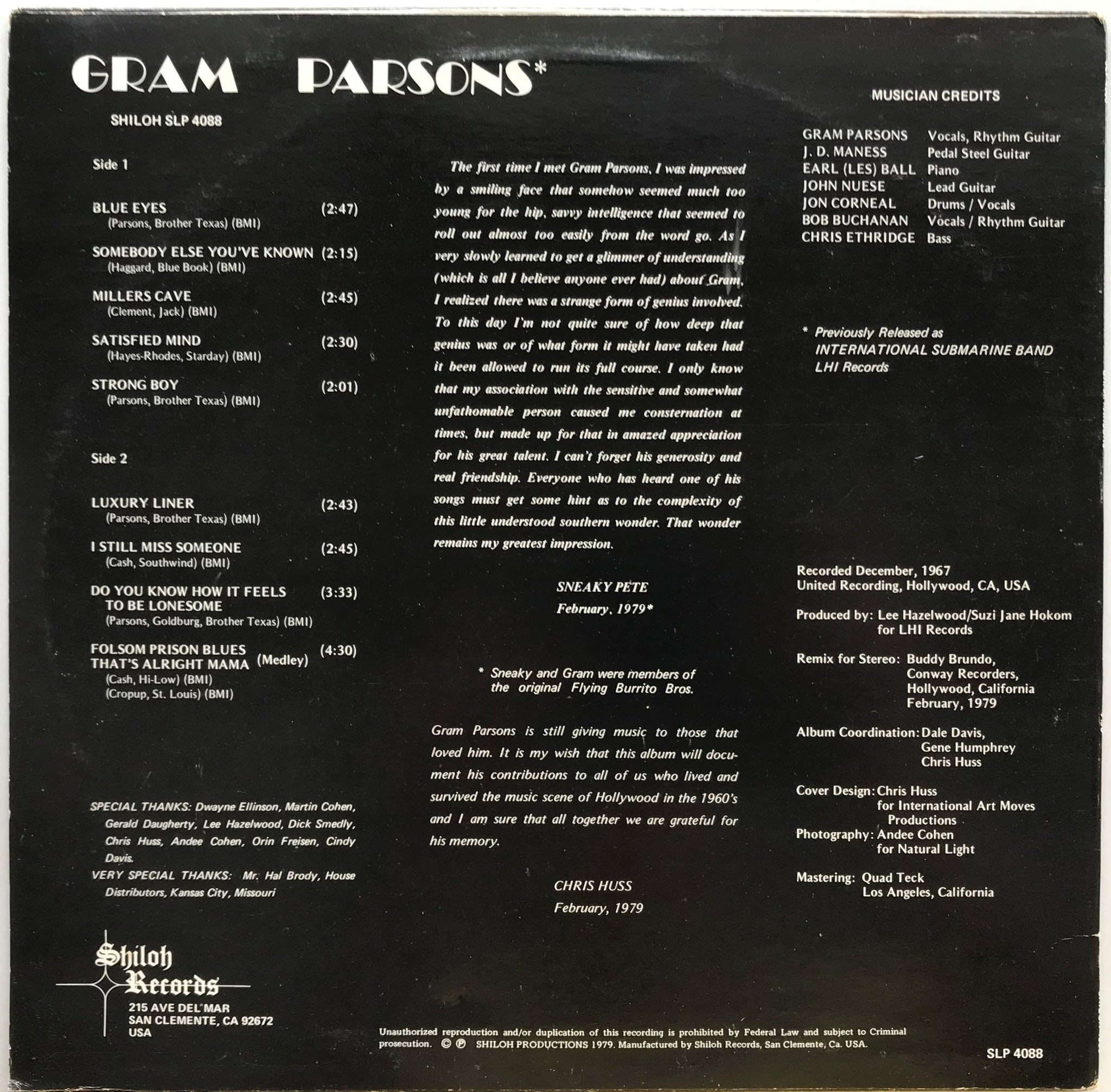 1979 Shiloh Records SLP 4088. Originally released with a different track order as the first album by The International Submarine Band on LHI Records in 1968. Minor edge wear on cover. Disc has minor surface marks, look like pressing faults, which cause a