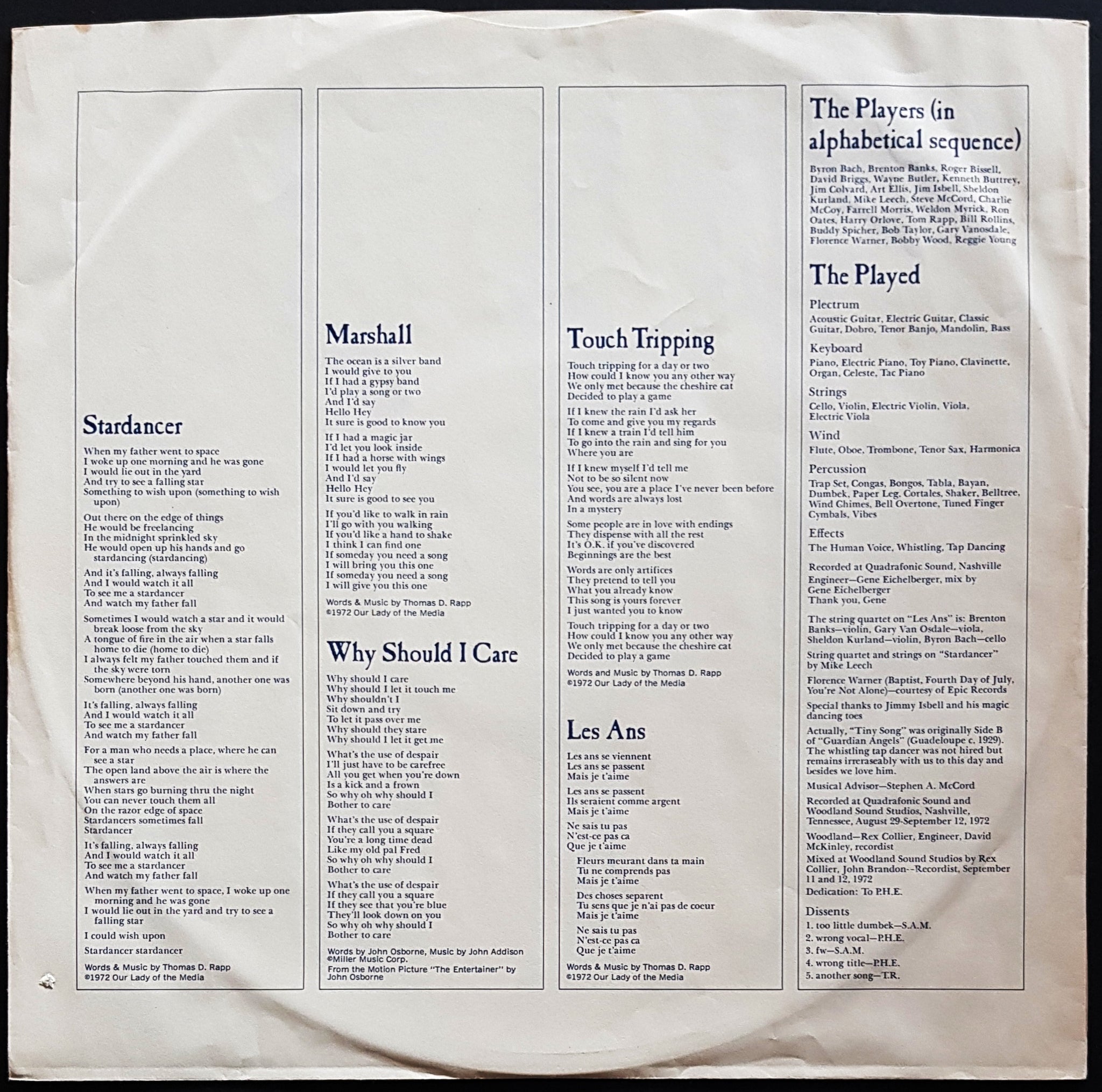 w.Inner. 1972 Blue Thumb Records BTS 44. Minor Surface and Ring Wear on Cover + Deletion Hole