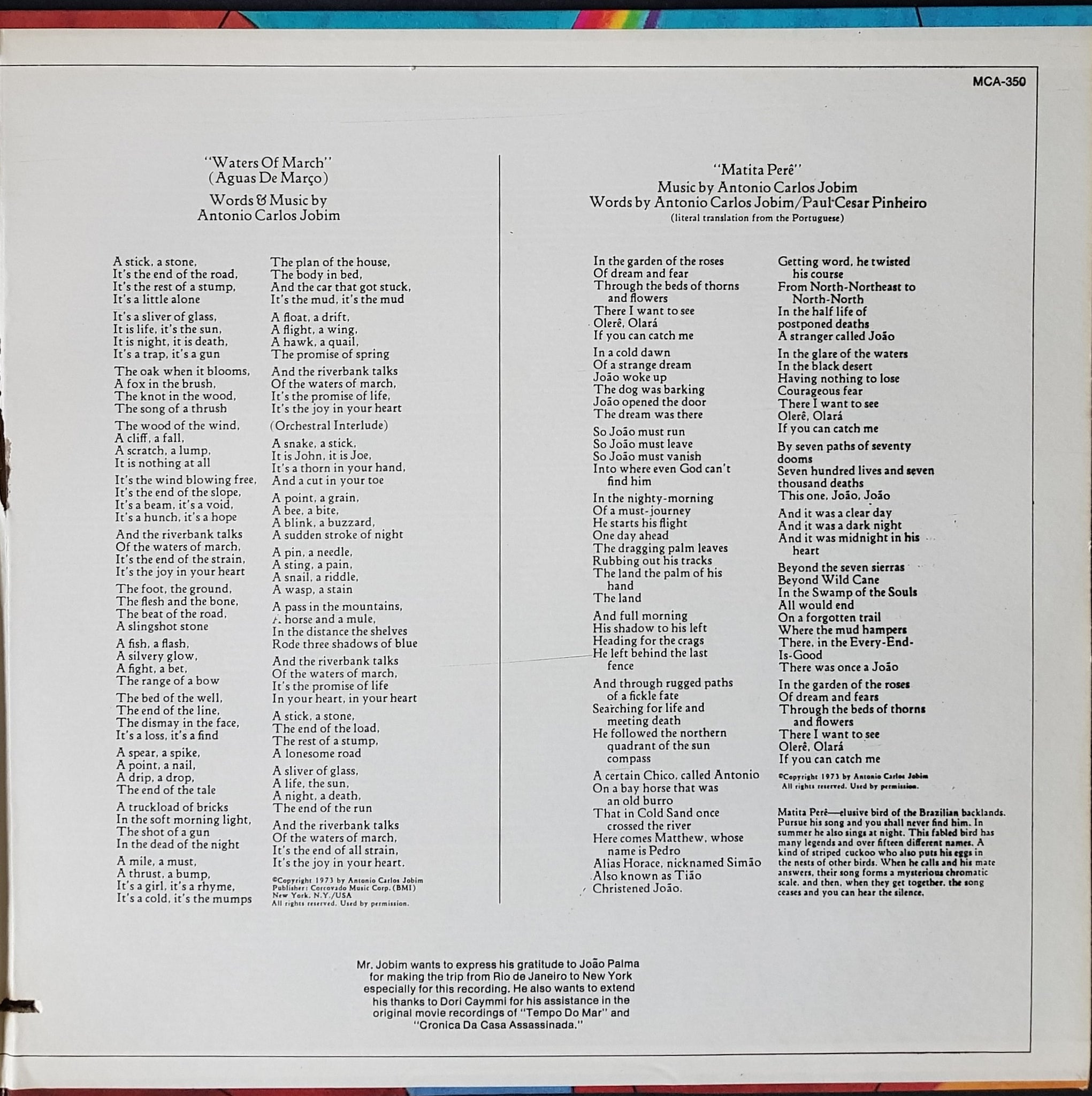 Reissue. Gatefold Cover. 1980 MCA Records MCA-350. Very Clean Copy. Cover has minor wear and deletion cut mark.