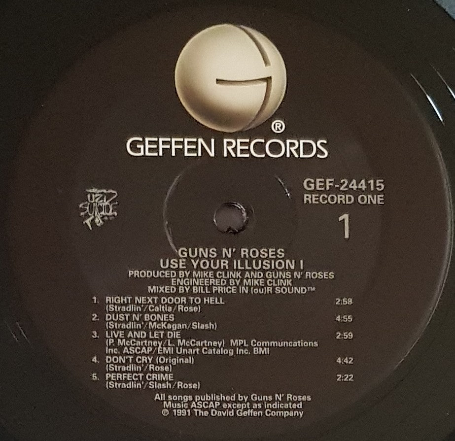w.Inner Sleeves. 2012 Geffen Records GEF-24415. Creases on front cover. Signed by Dizzy Reed on front cover.