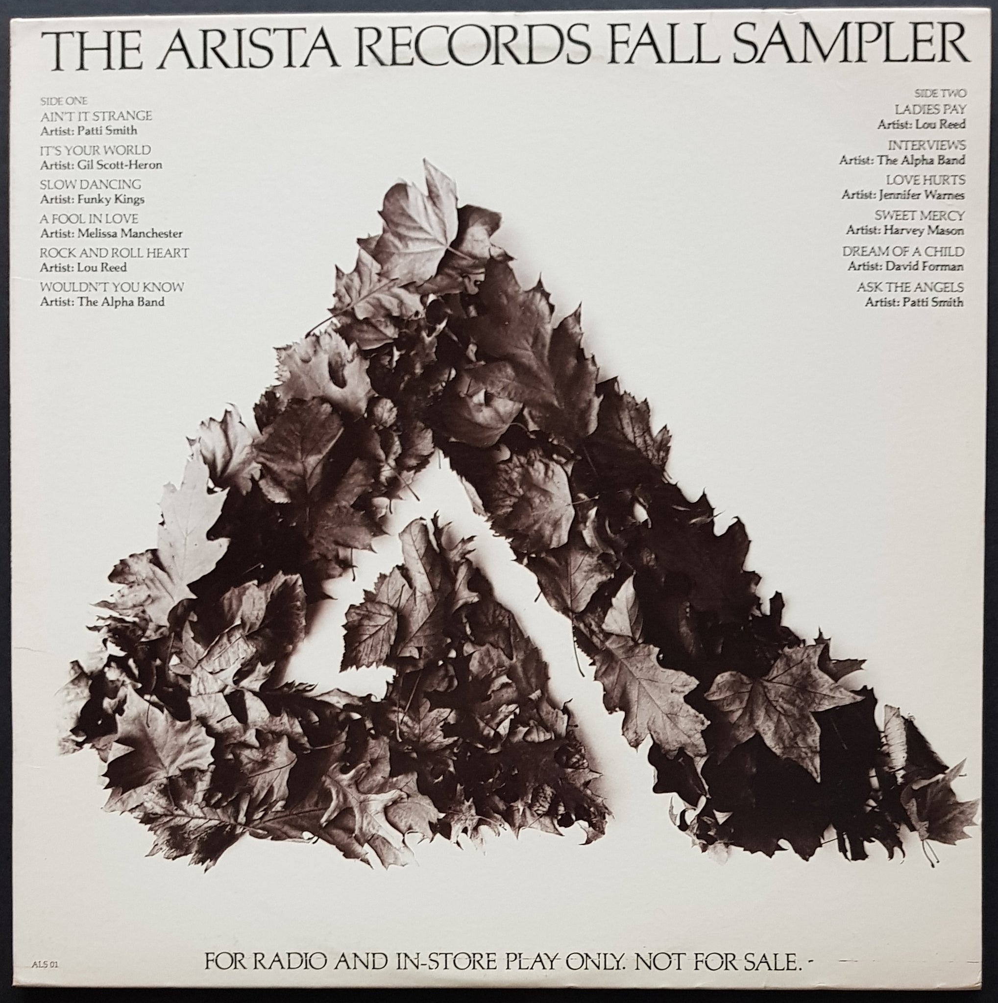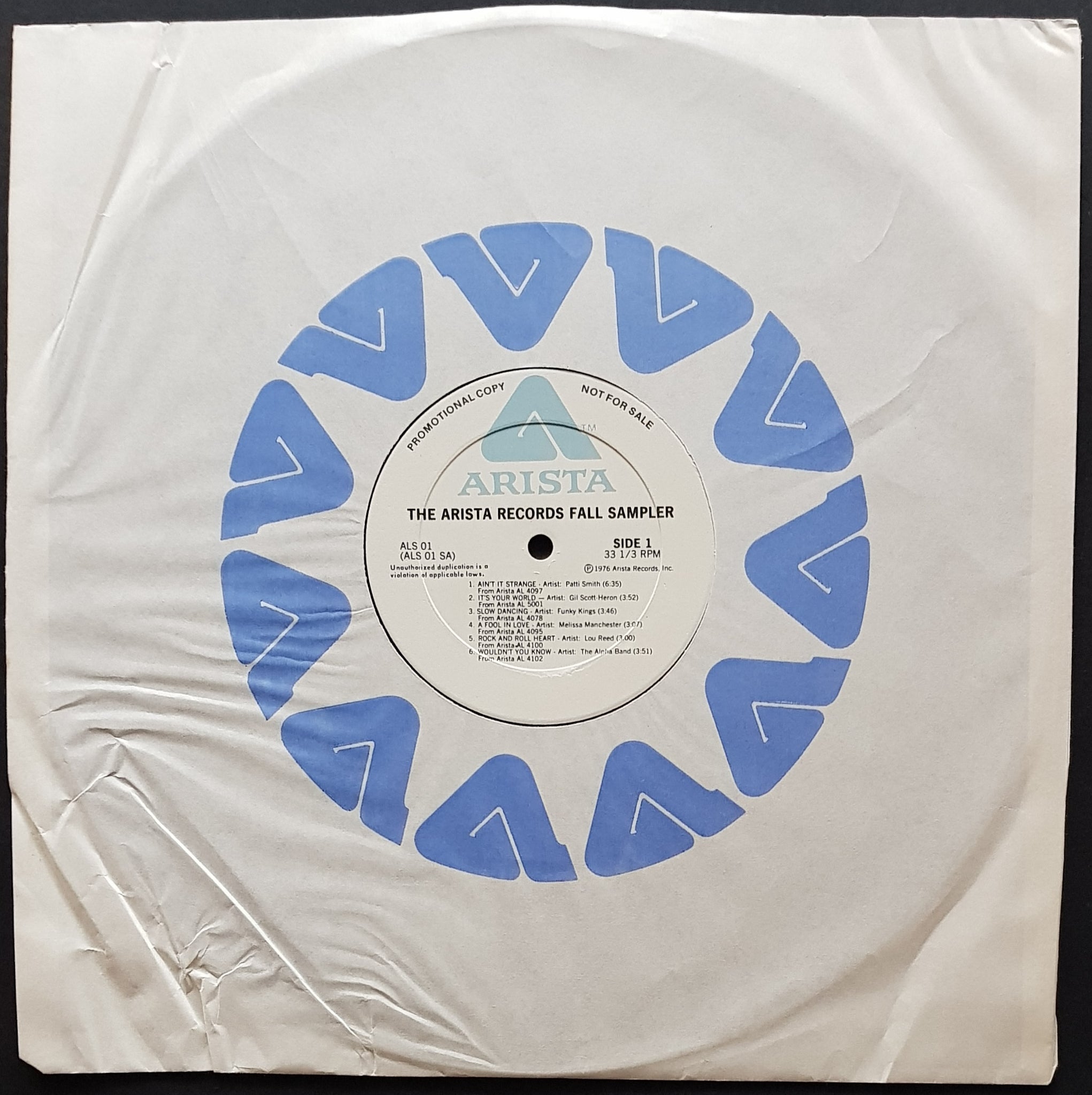 White Label Sampler w.2 Patti Tracks. 1976 Arista ALS01. Minor Ring Wear On Cover. Features tracks by Lou Reed, Jennifer Warnes, Gil-Scott Heron and others