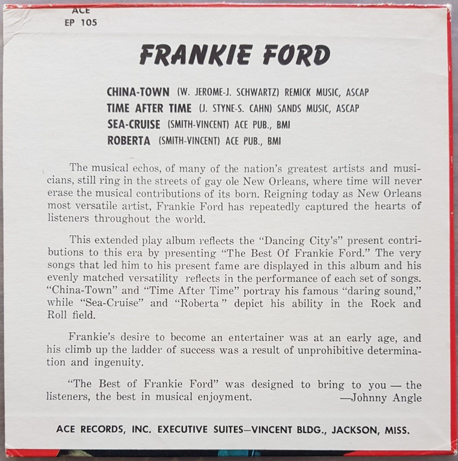 EP PS. Original ACE Records Label. EP105. Minor Wear On Split In Top Seam, Small Surface Tear in PS & Creasing On Corners. Relatively Clean Record.