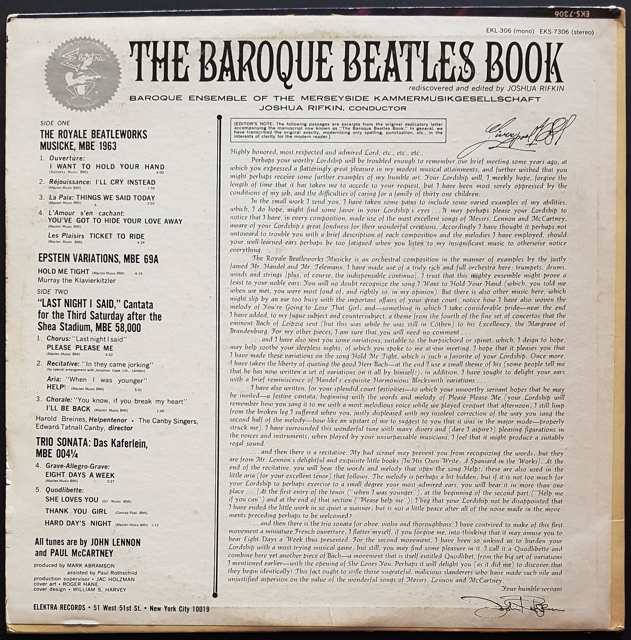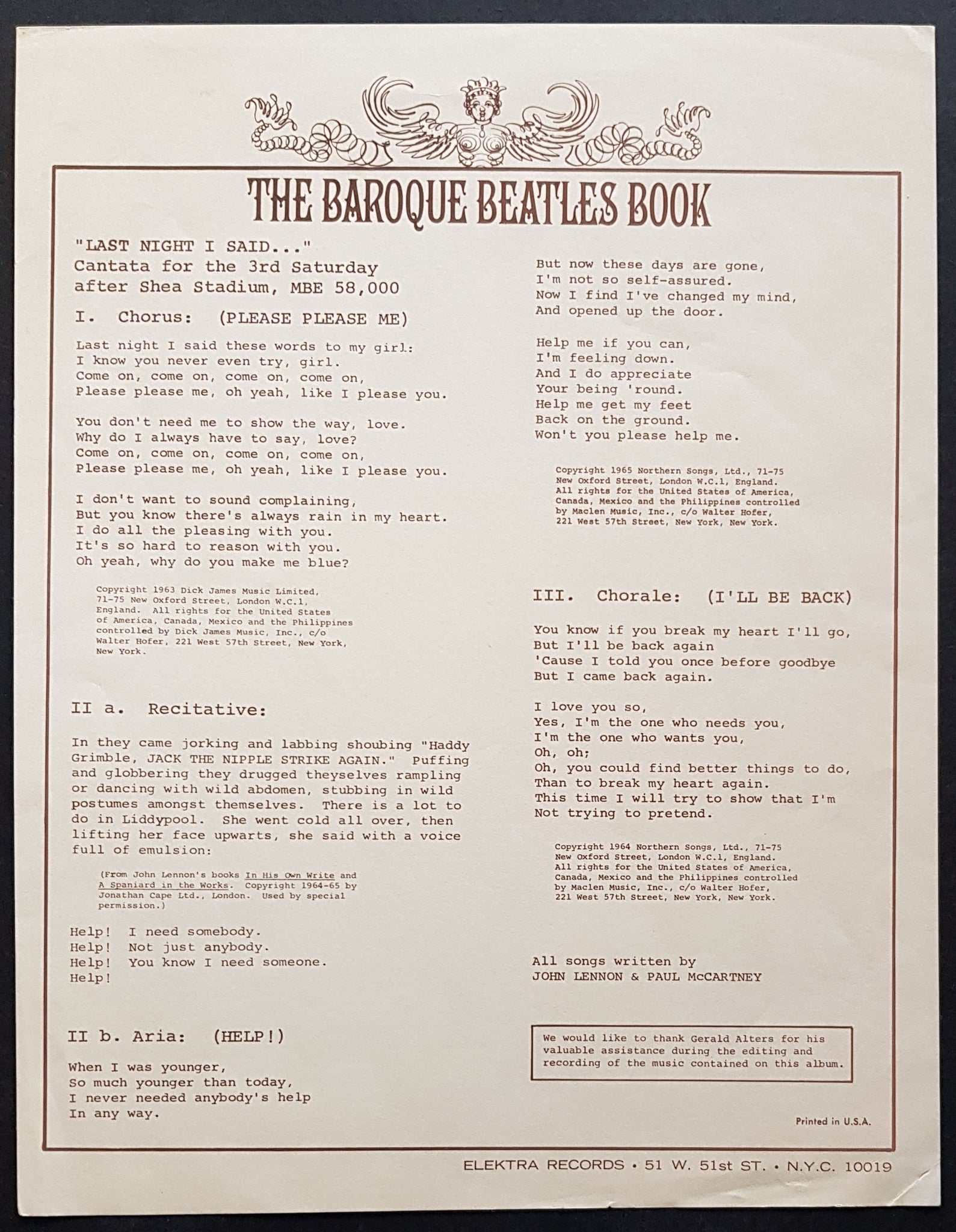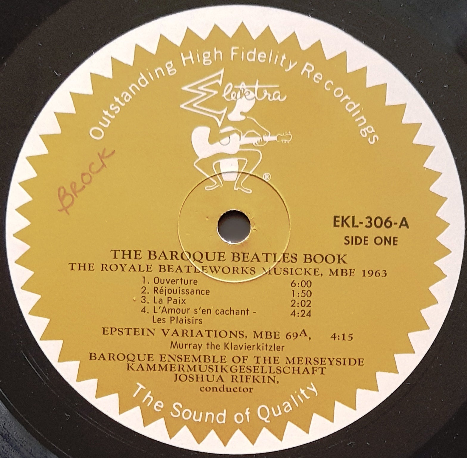 Cover Versions By Orchesta Conducted By Johua Rifkin. Original 1965 Gold / White ELEKTRA Guitar Player Label EKL-306 with Insert. Small Writing On Label.