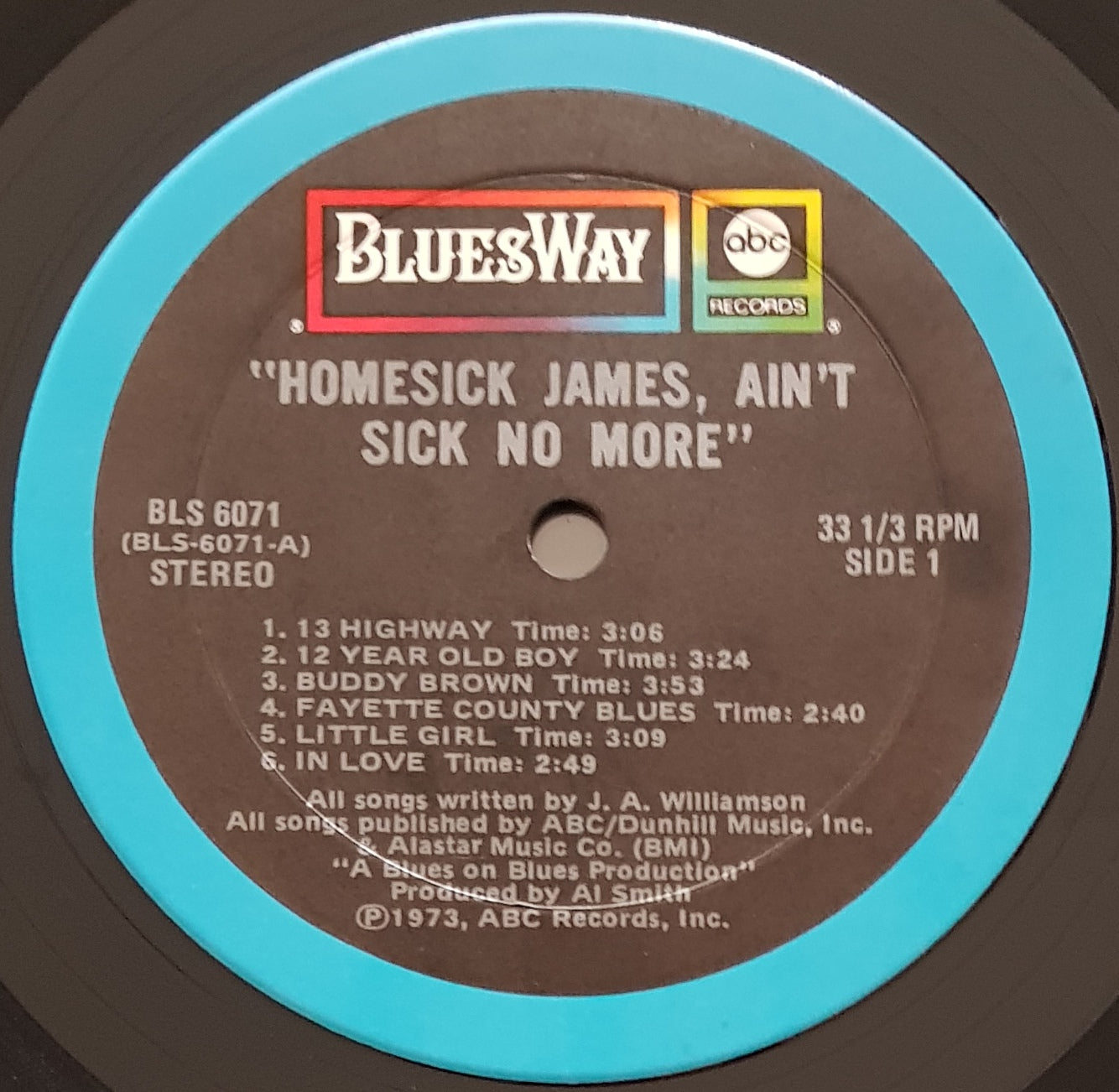 1973 Bluesway BLS-6071. Cover has small water stain, Wear and fading of cover along bottom seam and spine.