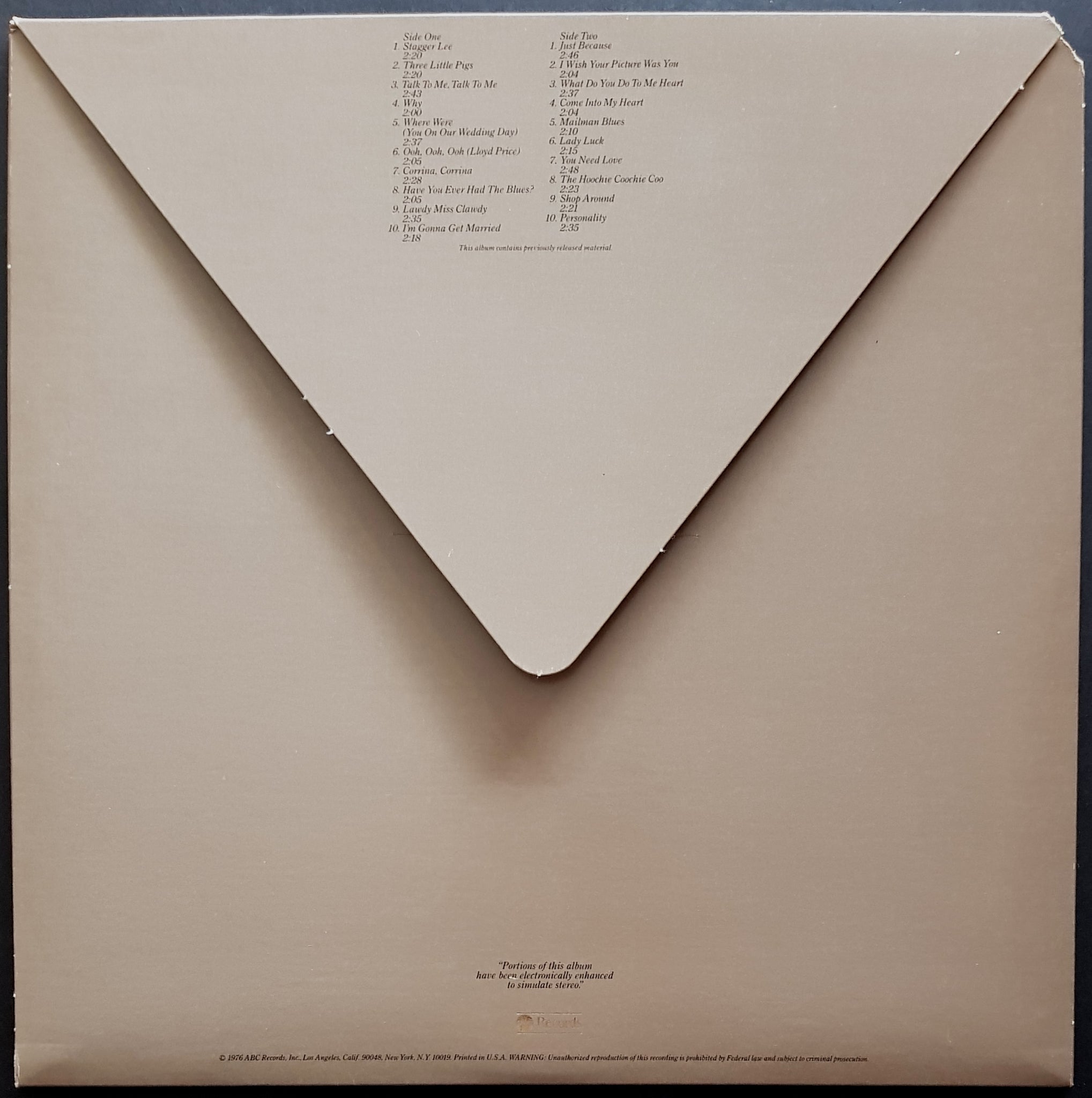 w.Envelope Style Cover. 1976 ABC Records AC-30006. Deletion cut cover
