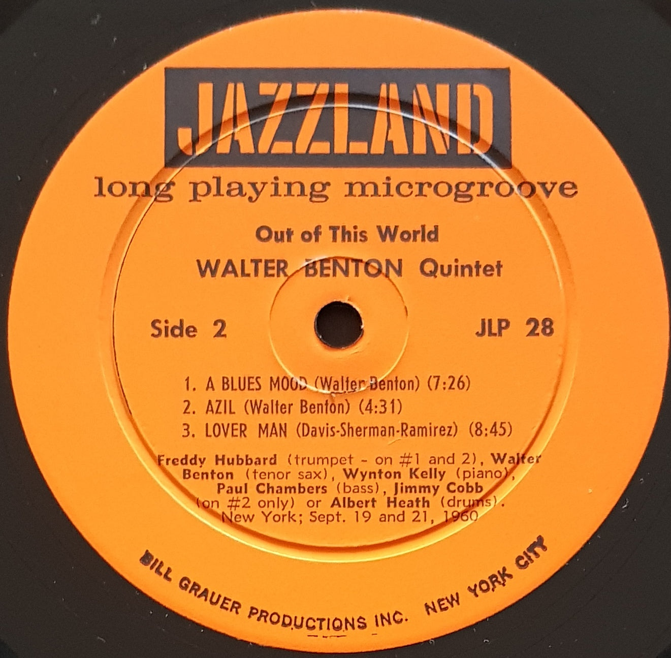 1960 Jazzland JLP 28. Cover has minor edge wear and 2 small seam splits. Spine has browned with age and top and bottom ends either are worn or have small tear in paper. Very Clean Record.