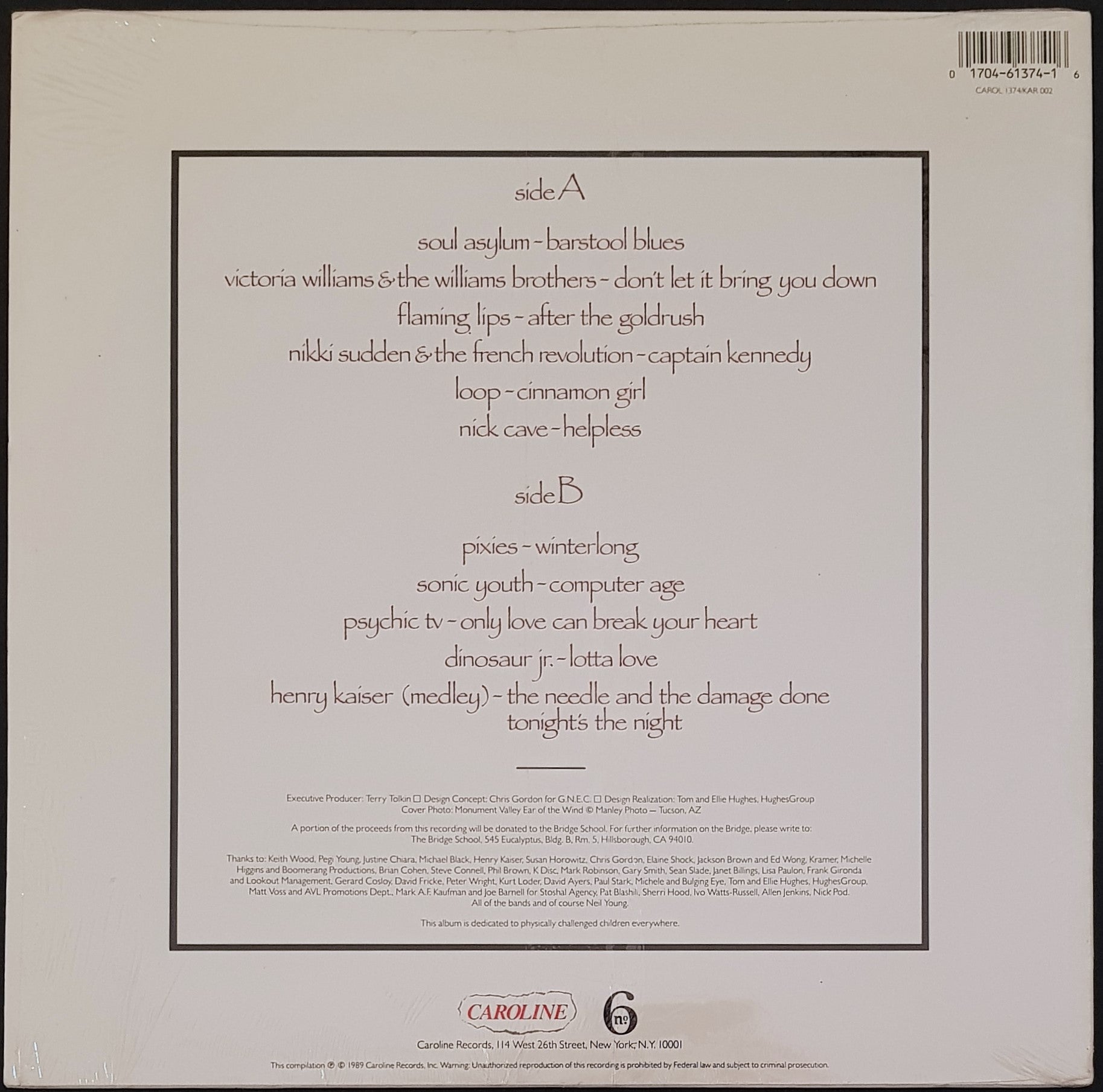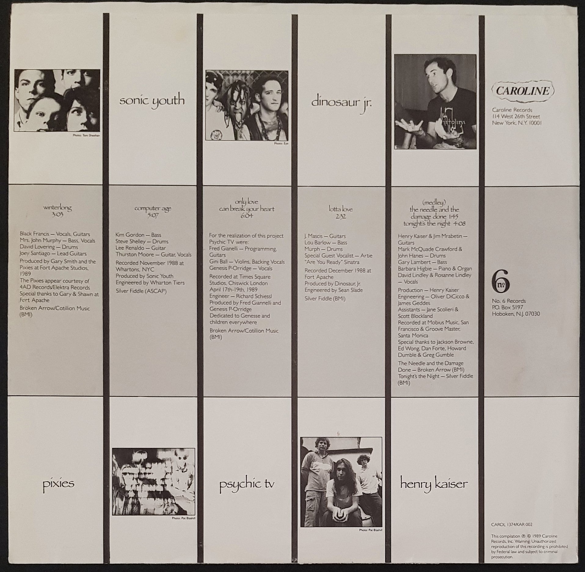 w.Inner Sleeve (Has split seams). 1989 Caroline Records CAROL 1374 / No. 6 Records KAR 002. Cover has original shrink wrap with hype sticker. Small Crease Marks Along Opening And Spine