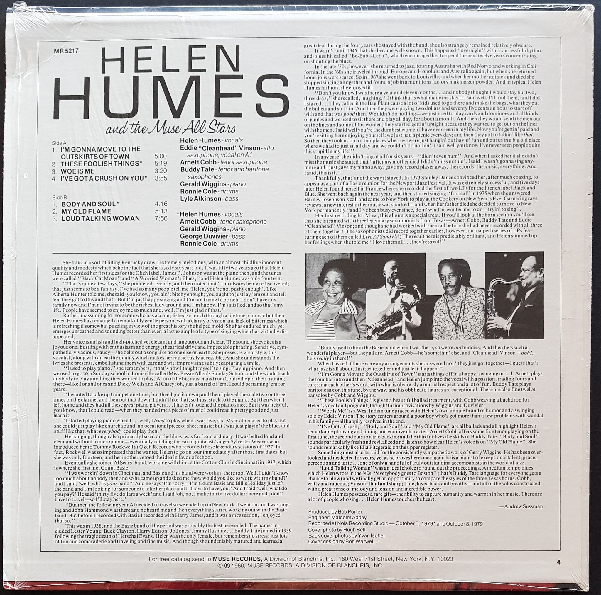 1980 Muse Records MR 5217. Cover Has Original Shrink Wrap, But There is a Corner Crease. Light Scuffs on Disc