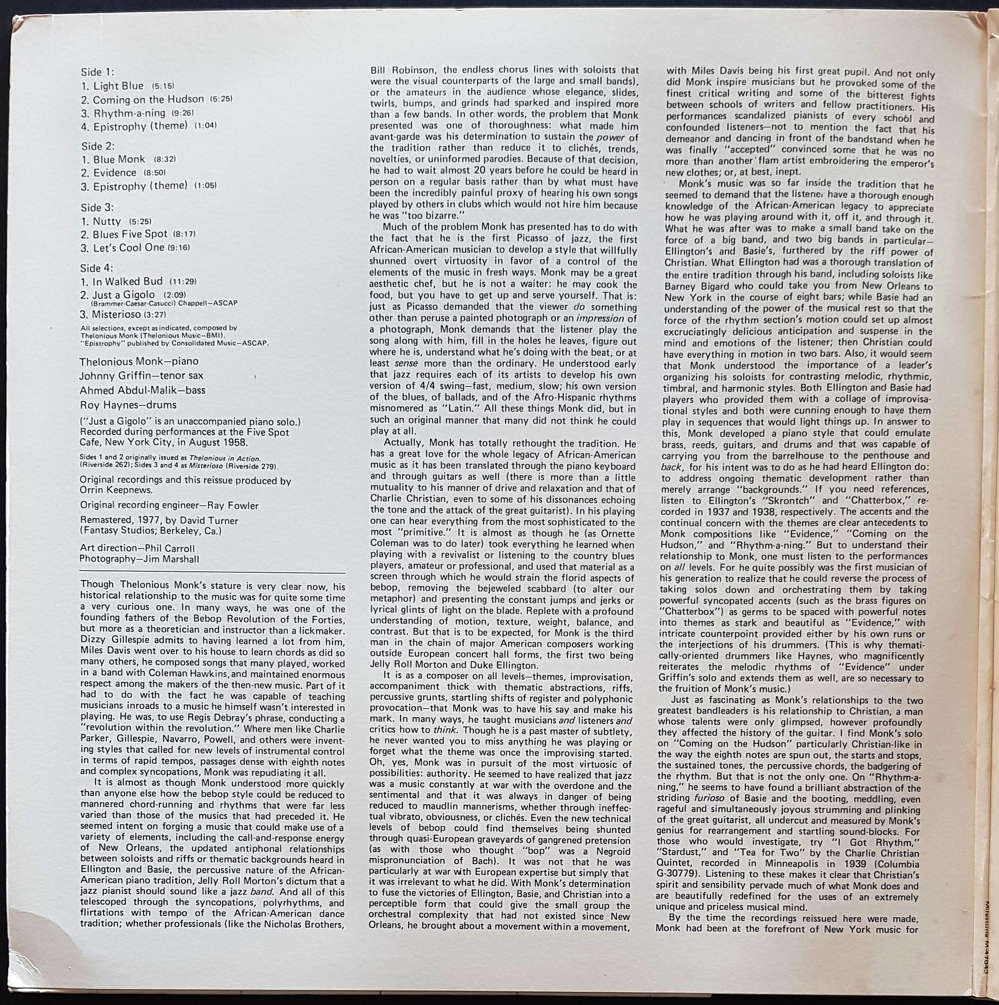 Gatefold Cover. 1977 Milestone M-47043. Cover has ring wear, corner creases, creases along spine and wear along opening.