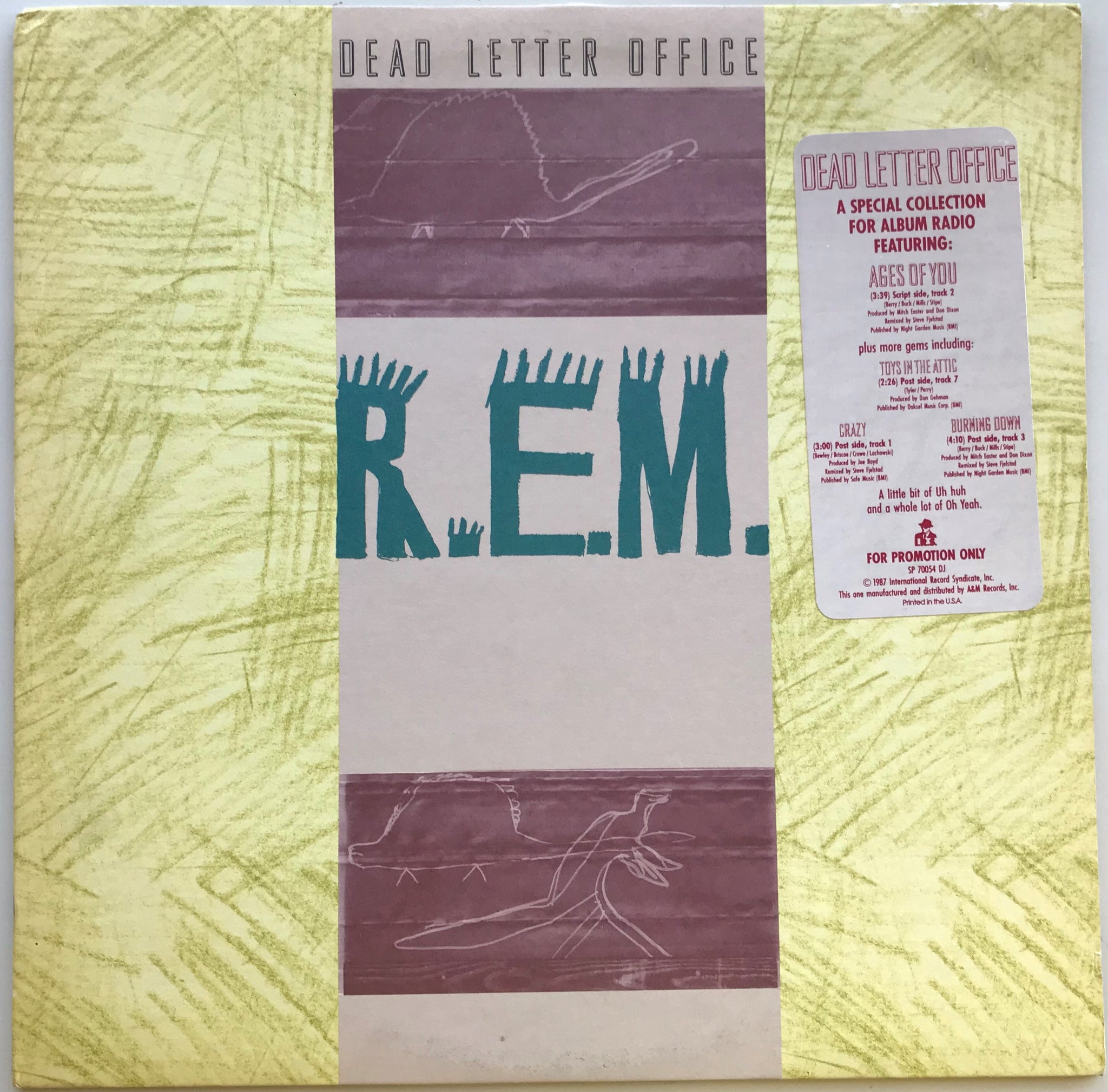 Promo Issue. w.Inner Sleeve, Gold Promo Stamp on Back Cover. Promo Hype Sticker on Front. 1987 I.R.S. Records SP 70054 DJ.