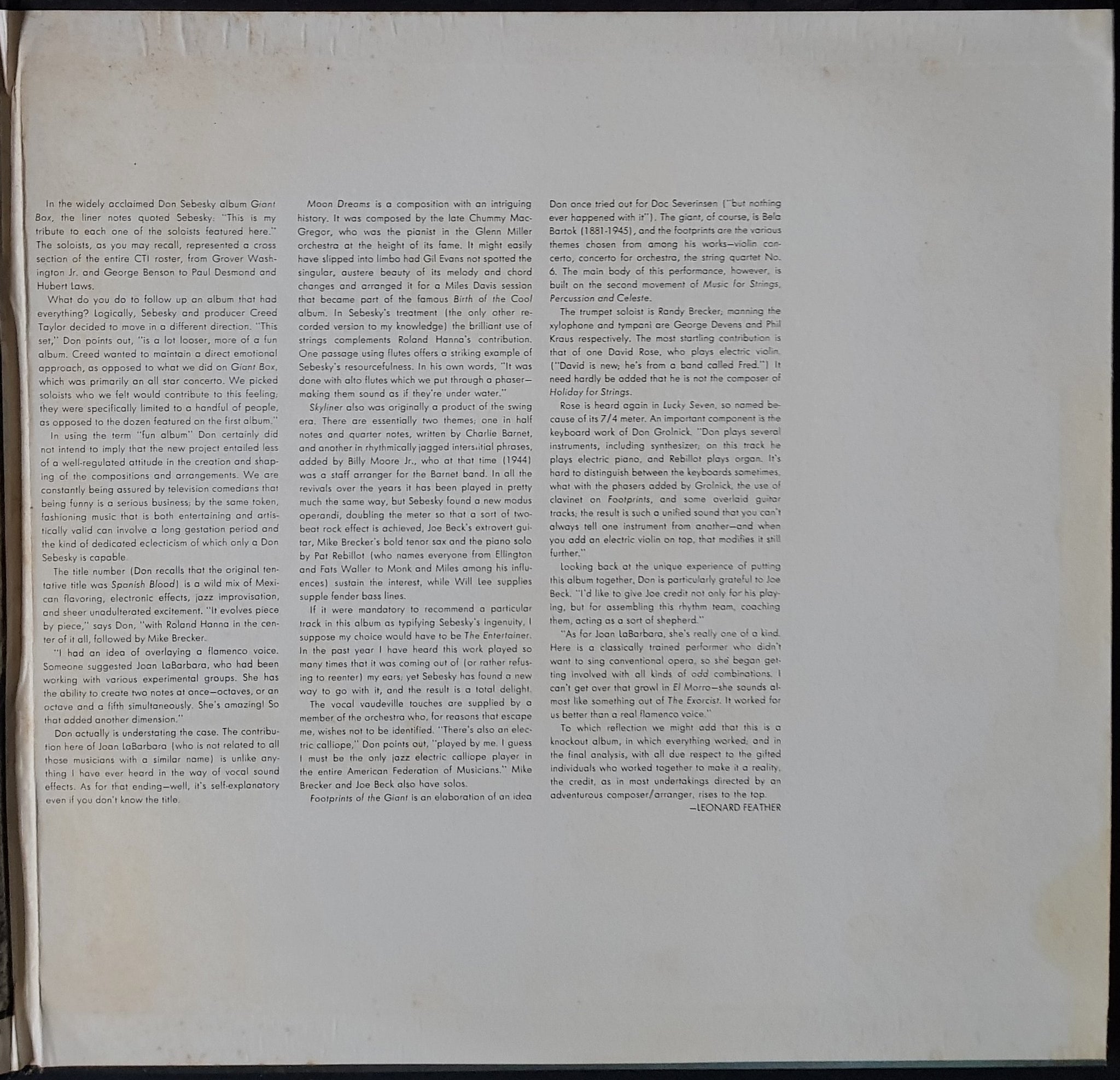Gatefold Cover. 1975 CTI Records CTI 6061 S1. Small water stain on cover and foxing inside of gatefold