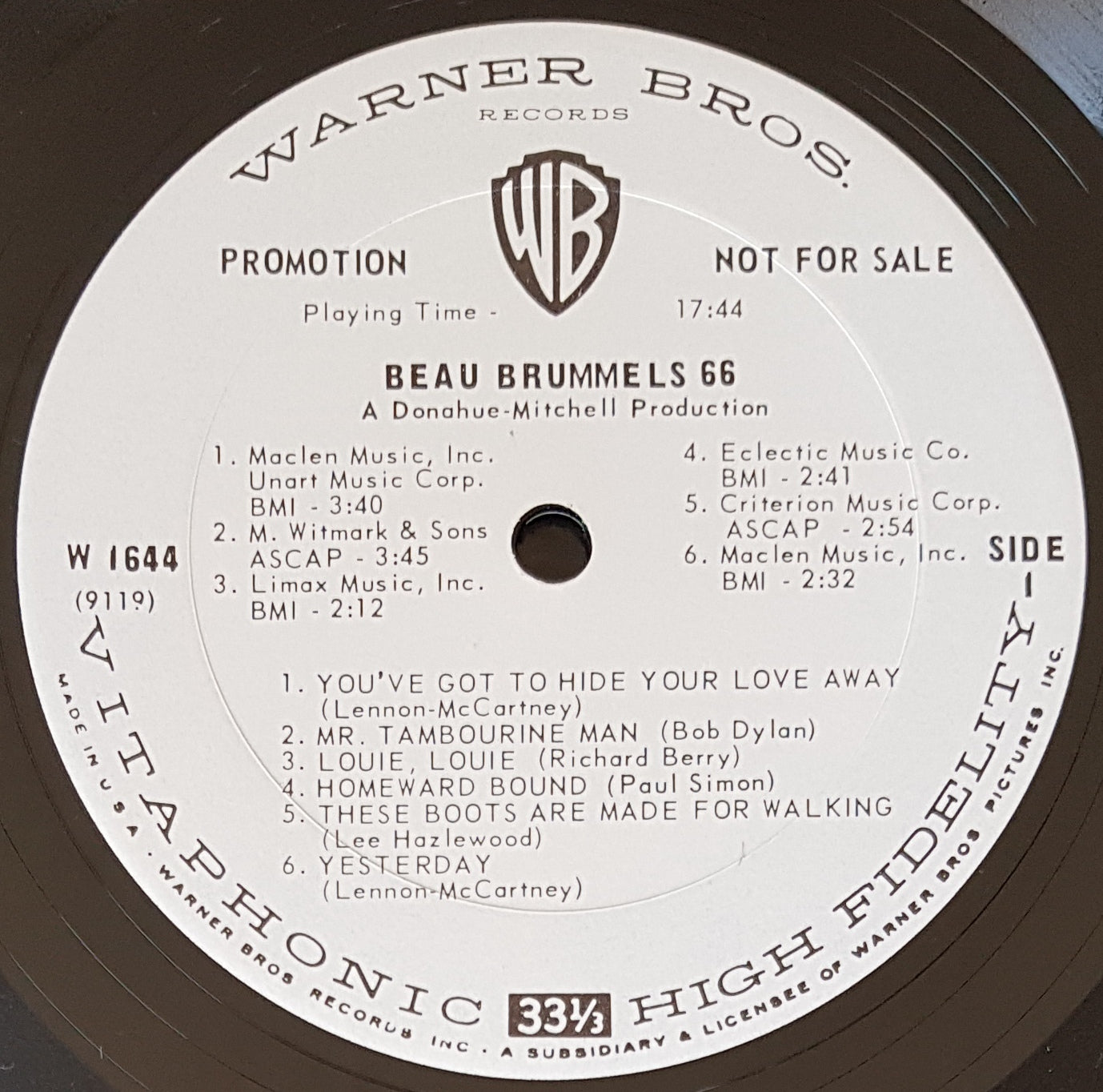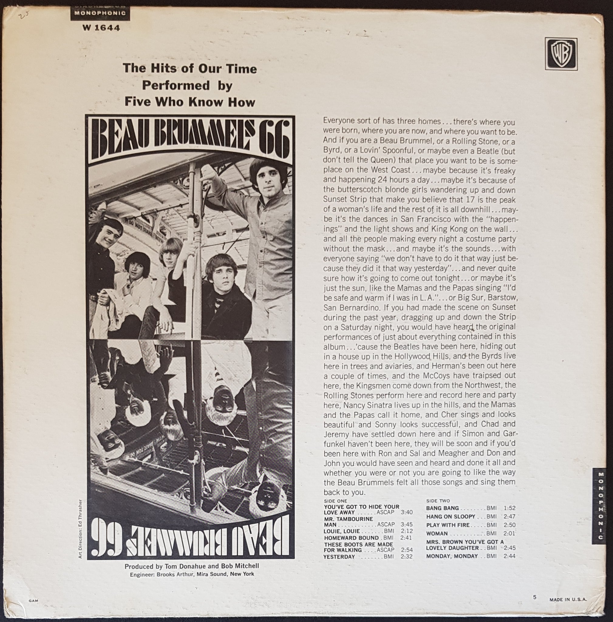 1966 Original MONO Warner Bros. W 1644. Minor edge wear, 3 minor corner creases, minor ring wear, small writing and minor foxing. Not trashed. Minor scuffs on otherwise clean disc
