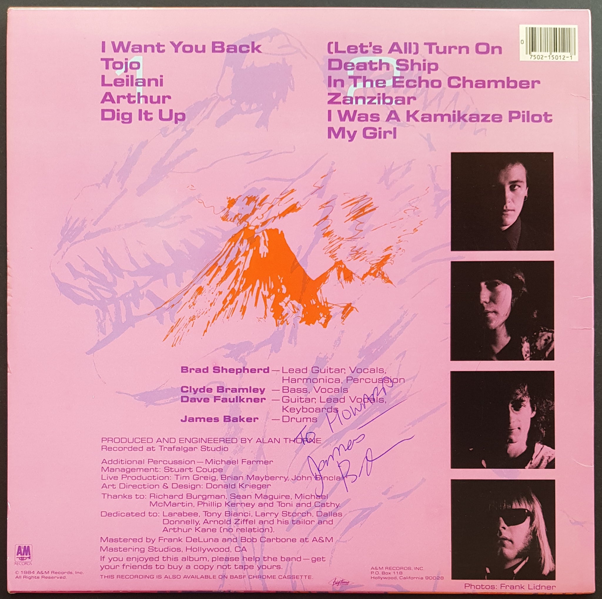 1984 A&M Records SP-5012. Minor Wear and Creasing on Cover. Personalised James Baker Signature on Back Cover.