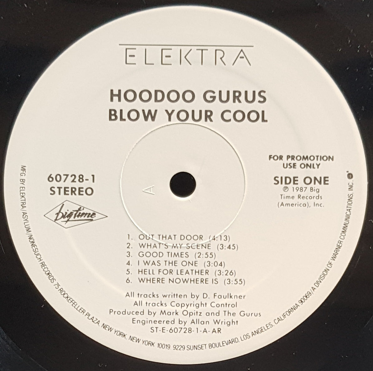 White Label Promo. 1987 Elektra 60728-1. Gold Promo Stamp on Back Cover. Hype Sticker on Cover which has minor surface wear & deletion cut mark