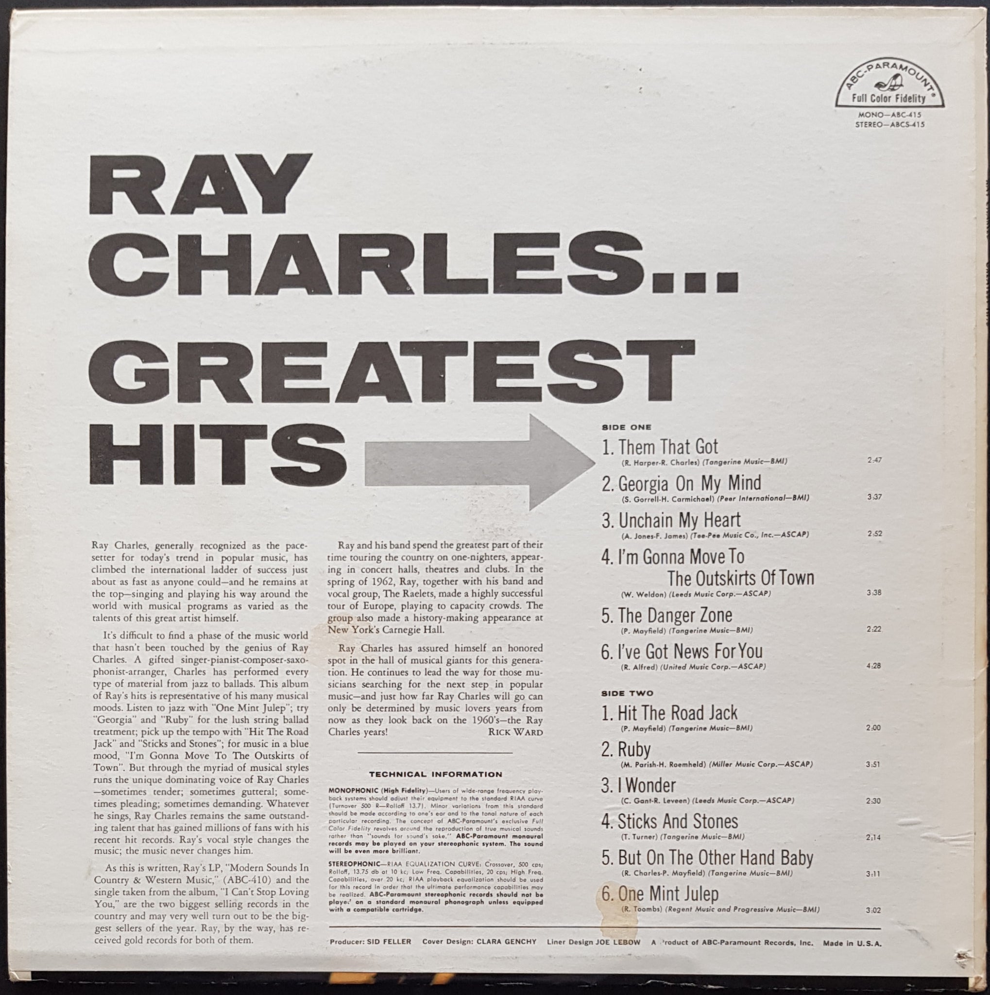 Reissue. 1972 ABC Records ABCS 415. Cover has minor wear, small deletion hole and small stain spots on rear. Small chip on rim of Disc, One or two Minor Marks, nothing serious.
