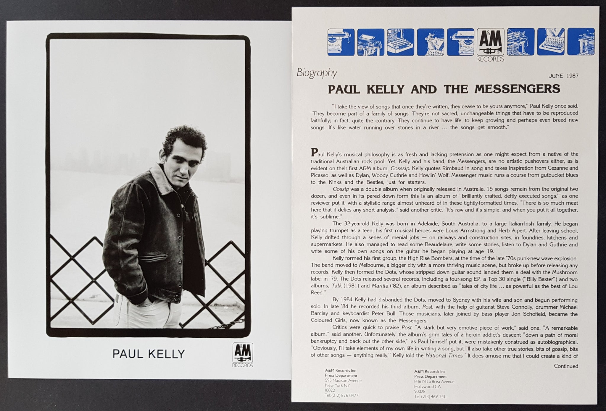 White Label Promo Only. 1988 A&M Records SP-17481. Includes a press release in a printed envelope and A&M promo photo of Paul Kelly