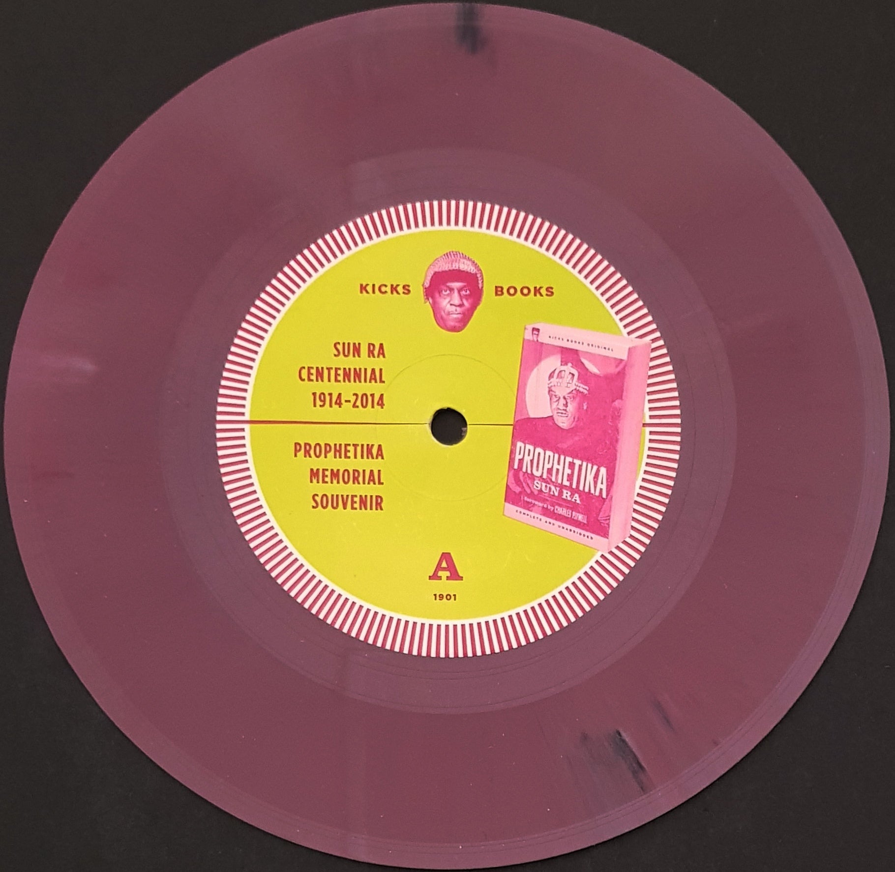Issued by Kicks Books for 'Sun Ra Centennial 1914-2014 ' Purple Marbled Vinyl with Ink Stamped White Sleeve