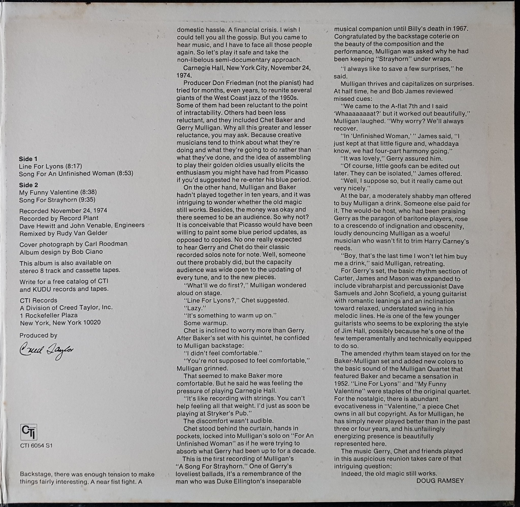 Gatefold Cover. 1975 CTI Records CTI 6054 S1. Laminated front cover has minor surface wear. Some foxing inside of gatefold.