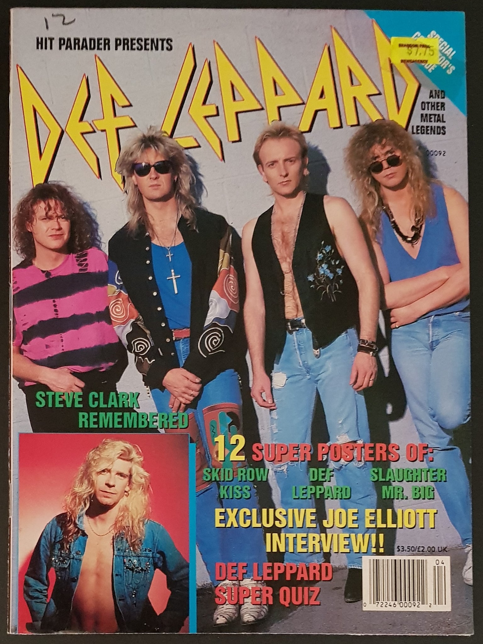 Printed 1992. With Individual Def Leppard Band Member Pin Ups, Kiss, Skid Row & Others. Original Shop Price Sticker on Cover