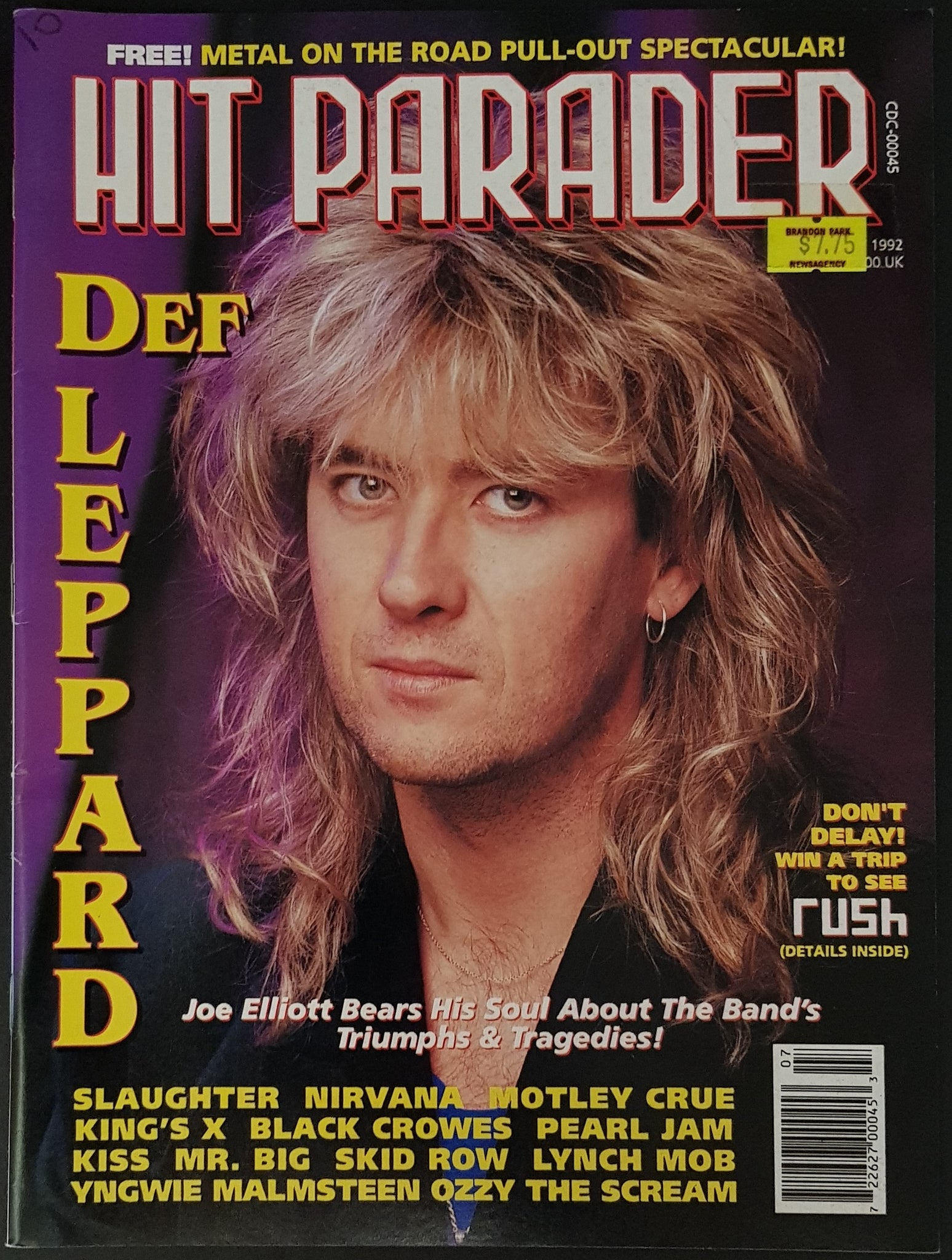 w.Joe Elliott Cover & Def Lep Feature. Articles on Motley Crue, Kiss, Megadeth & Others. Metallica Pin-Up. Metal On The Road Poster Attached. Old Shop Price Sticker Taped To Cover