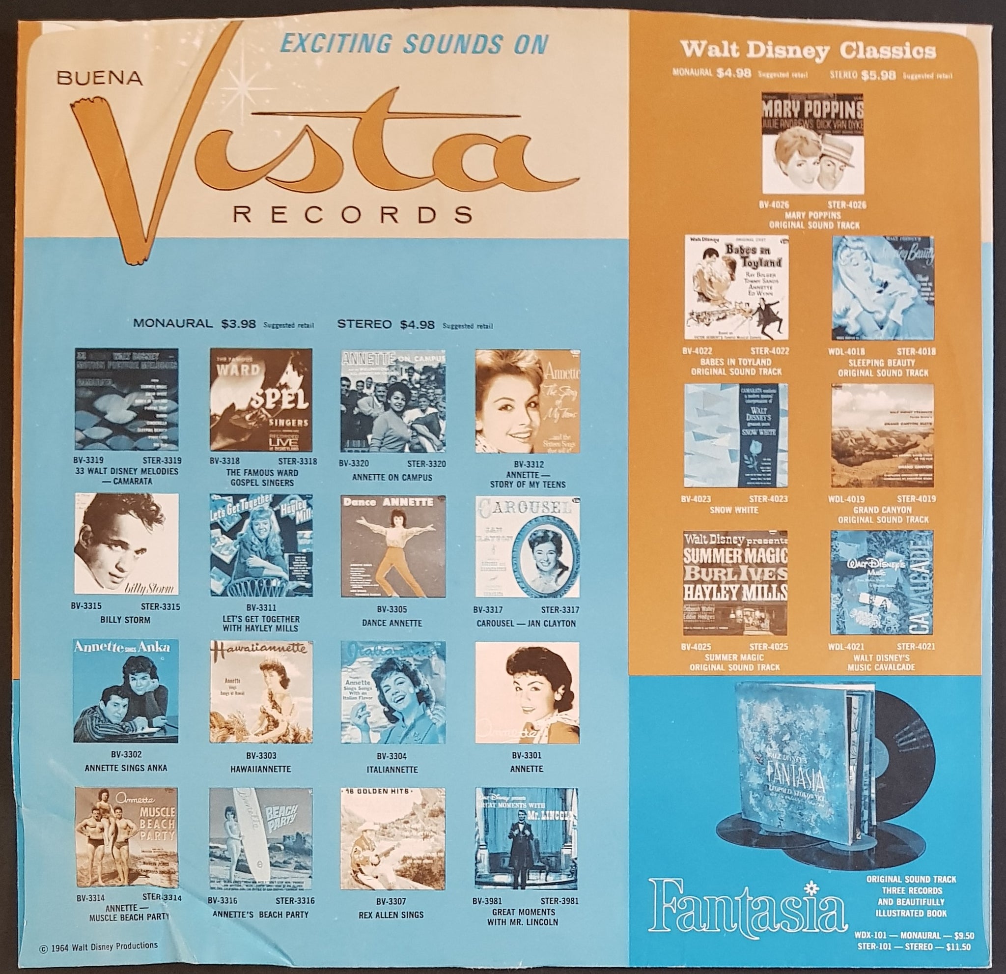 Gatefold Cover. 1964 Buena Vista Records BV-3328. Minor ring and edge wear on cover. Very clean disc with light superficial hairlines.
