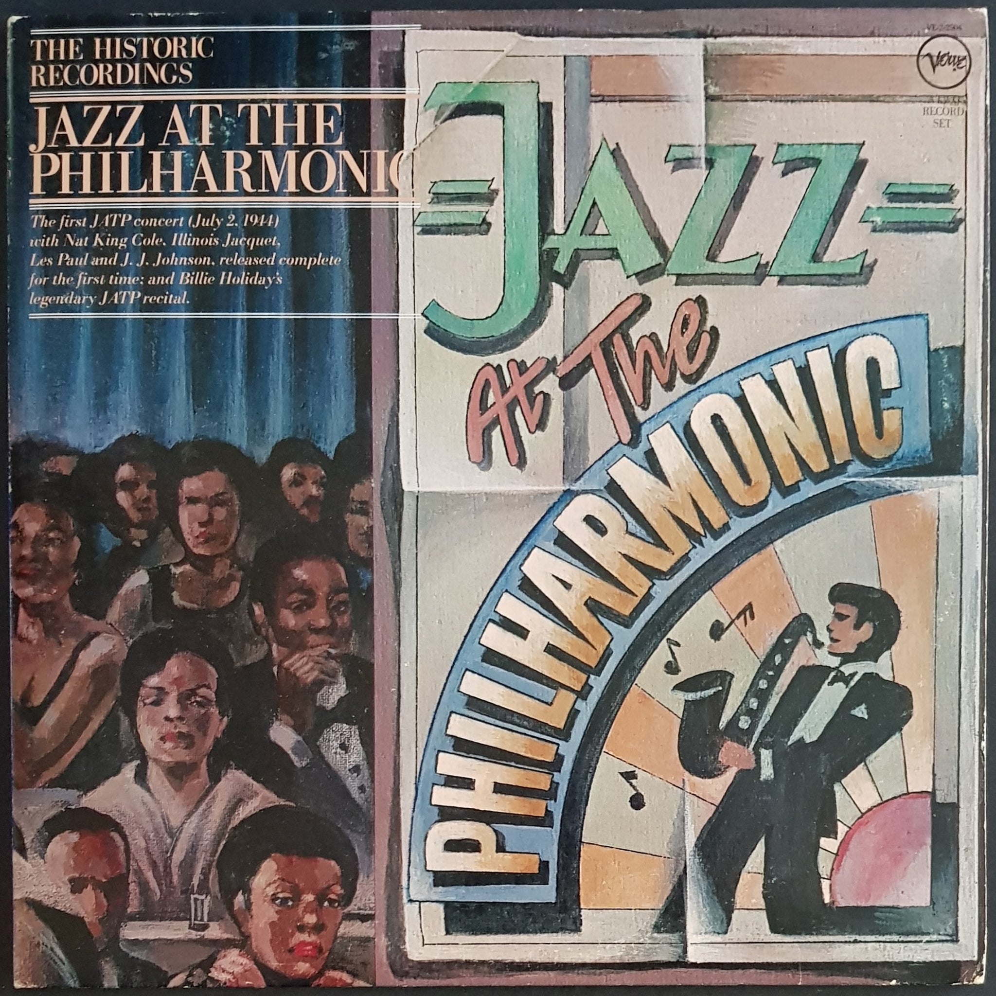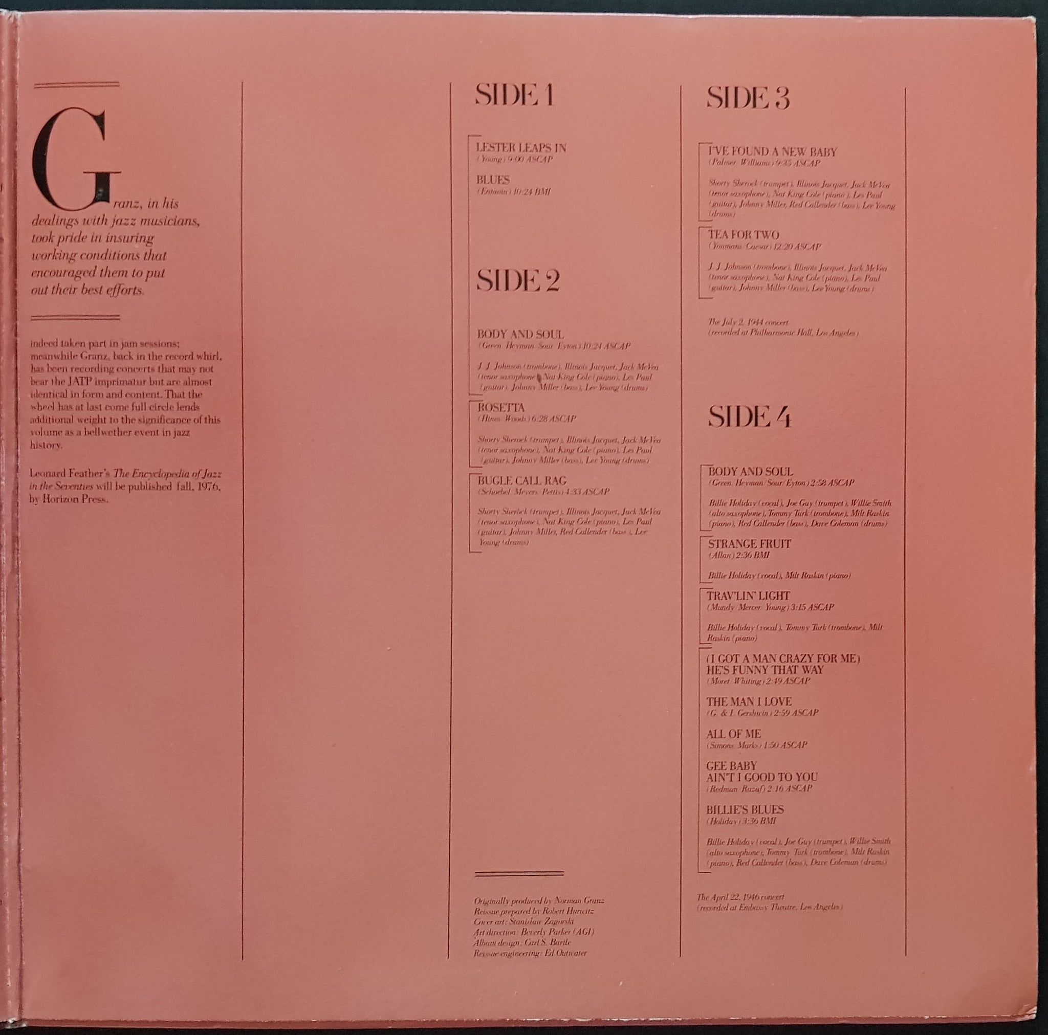 Gatefold Cover. 1976 Reissue Verve VE-2-2504. Features Nat King Cole, Billie Holiday, Les Paul + Others. Surface, Ring & Edge Wear on Cover.
