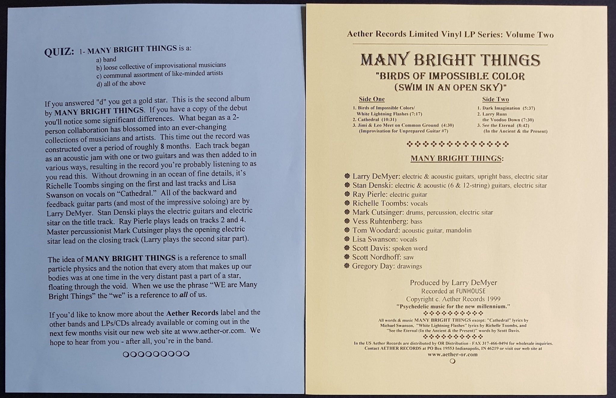 Limited Edition Reissue w.Inserts. #307/450. 1999 Aether Records AELLP-006. Hype sticker attached to original resealable cover