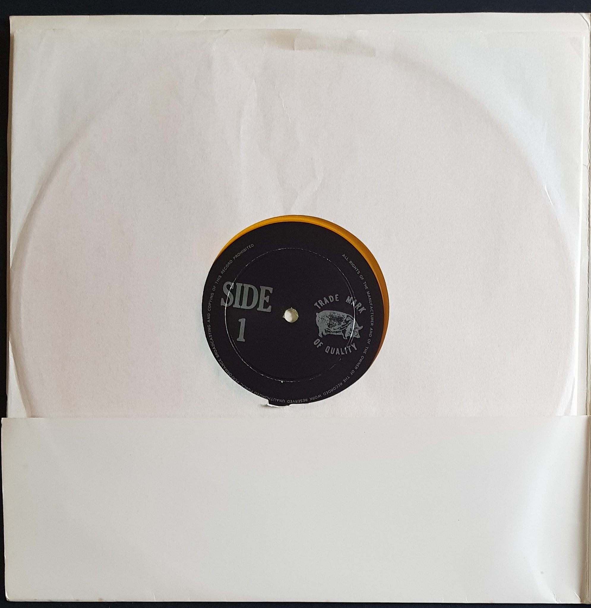 Printed Fold Open Cover. Trade Mark of Quality Labels. Yellow & Pale Blue Vinyl XCN-1/4. Minor Creases on Cover