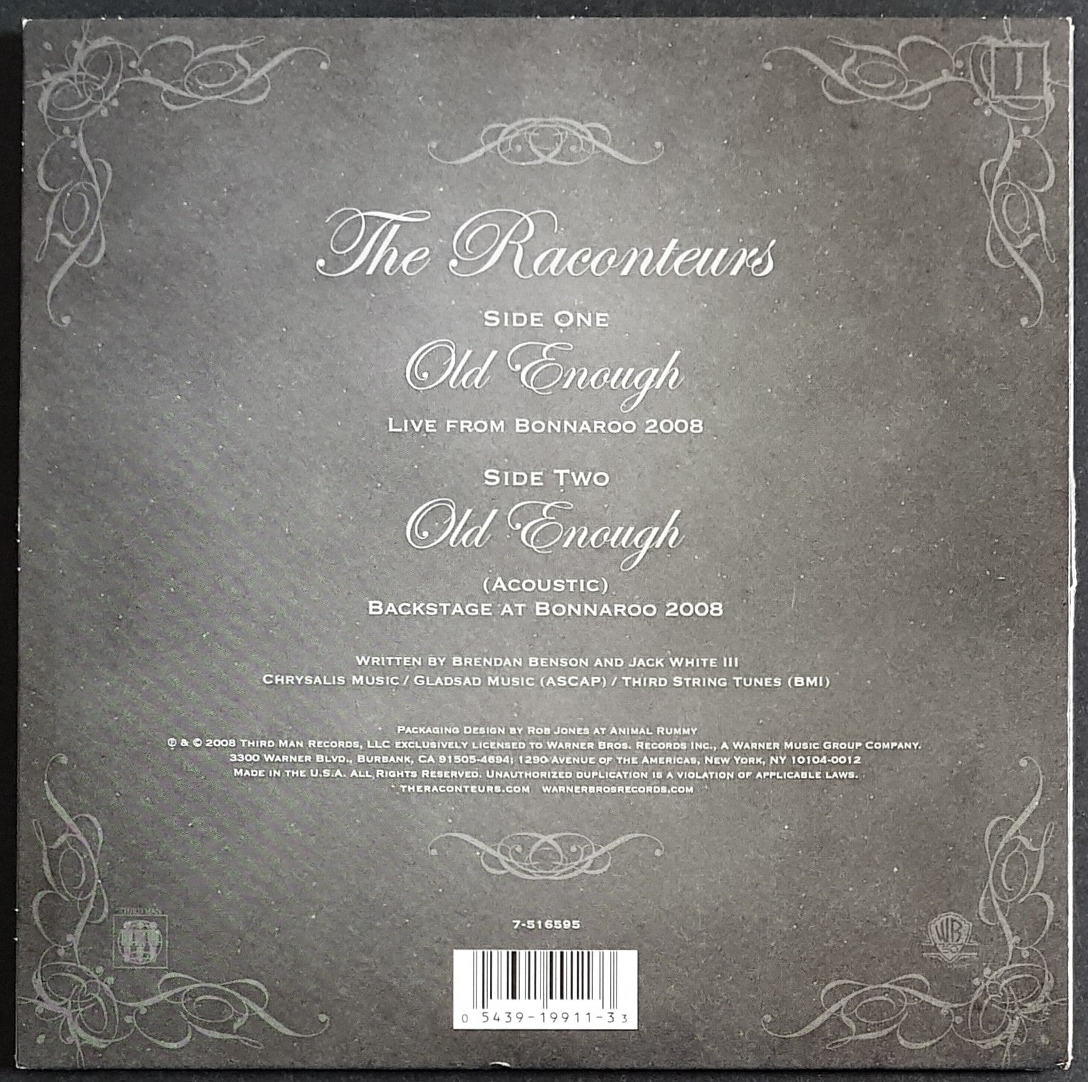 PS. 2008 Warner Bros. 7-516595. Tracks are Live and Backstage From Bonnaroo 2008. Cover has minor surface wear and corner crease. Paper scuffs on otherwise clean disc.