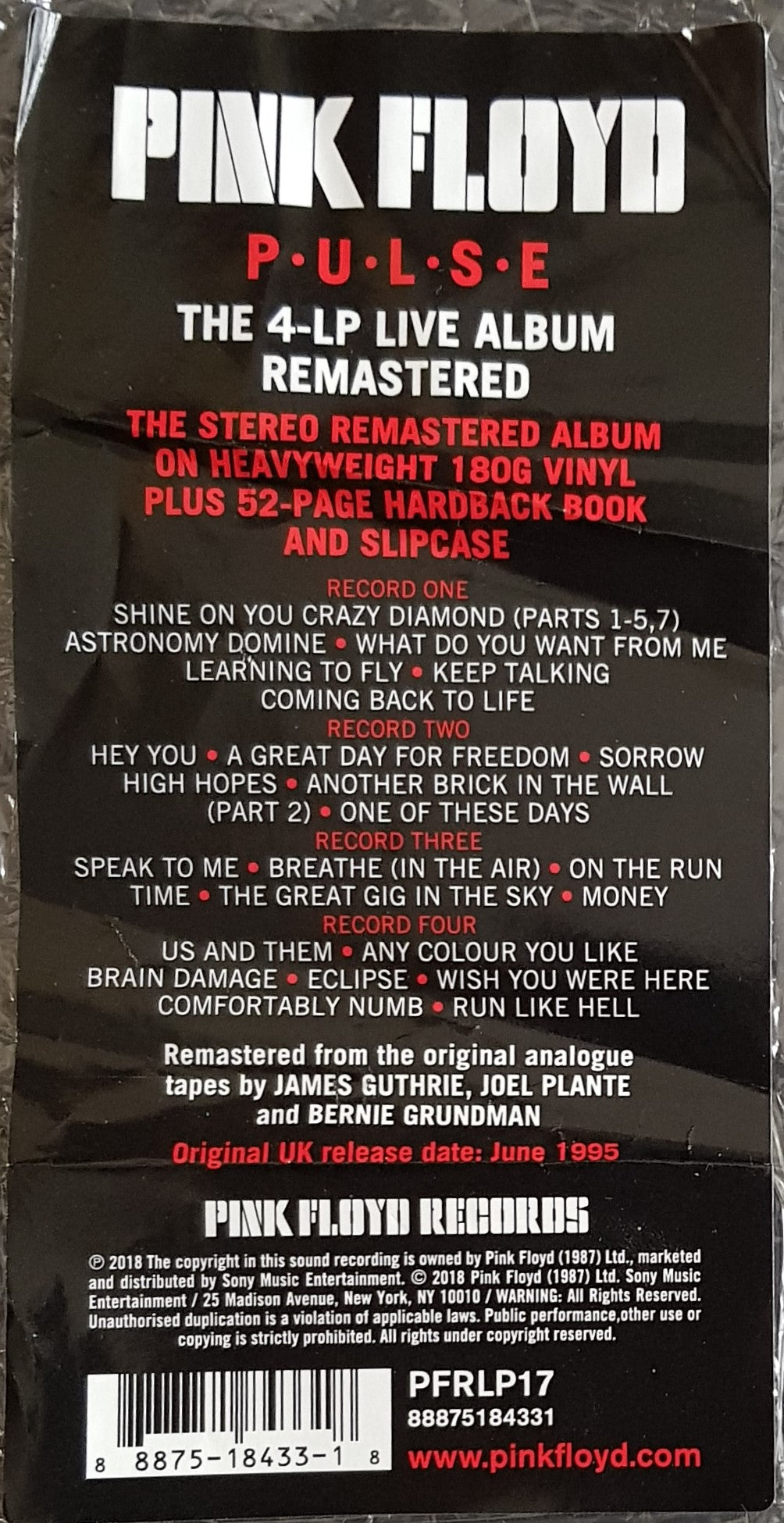Box Set Complete with Book. 2018 Pink Floyd Records PFRLP17. All LPs Have Original Inners. Individual LP covers have minor surface scuffs and are VG+. Comes with original shrink wrap w.hype sticker (Has been removed and poorly stored, creasing the sticker