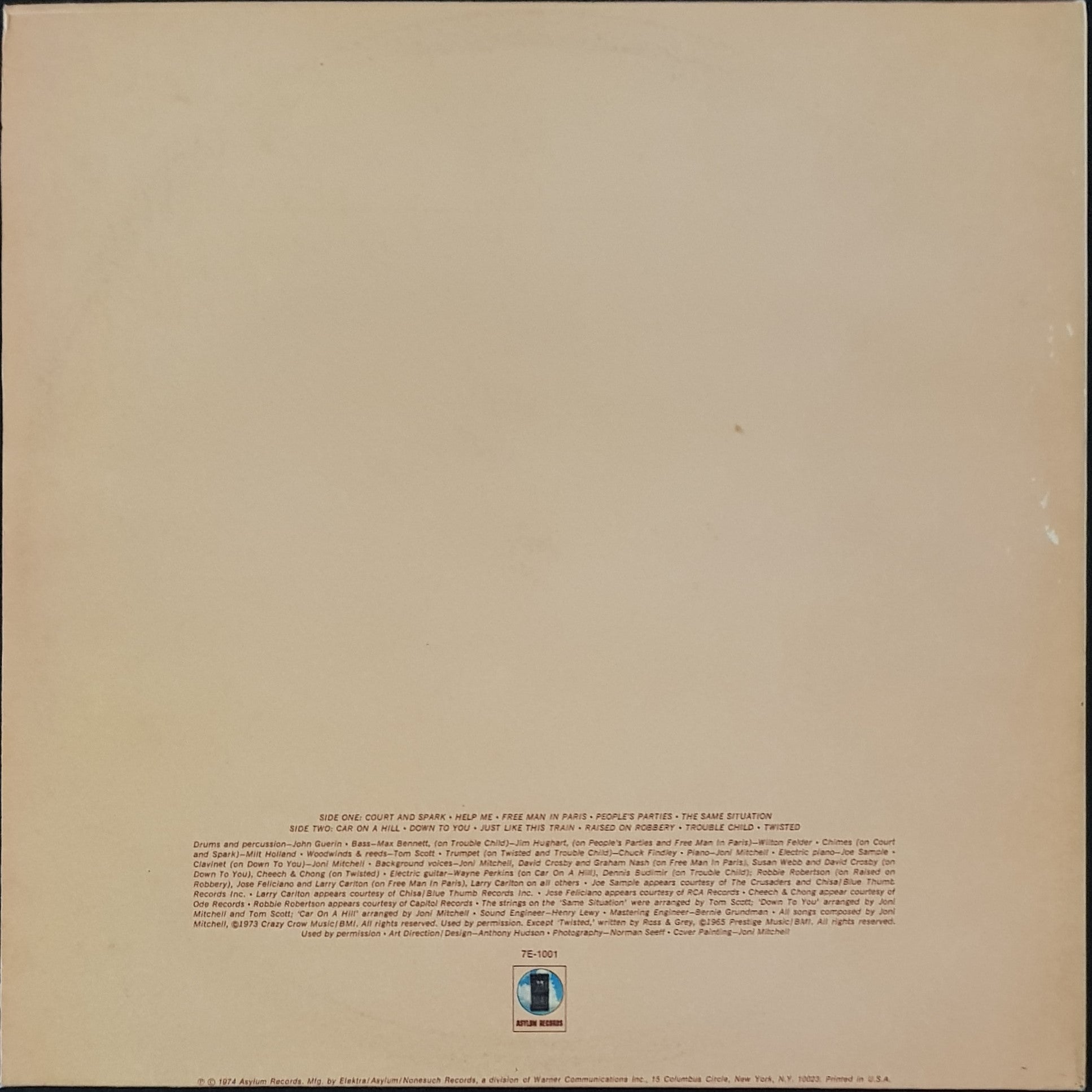 Gatefold Cover. Asylum Records 7E-1001. Cover has minor soiling and small stain on front.