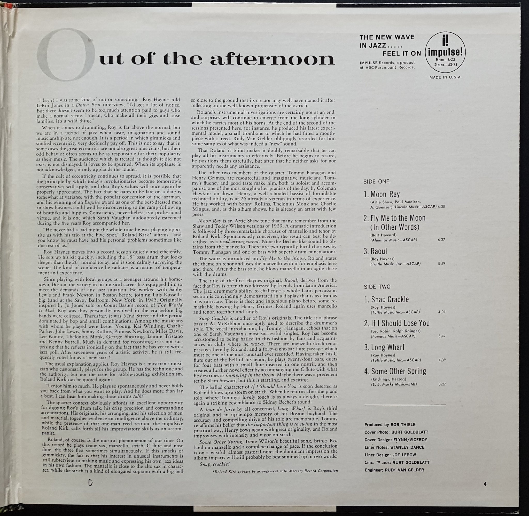 Gatefold Cover. Reissue. 1974 ABC Impulse! AS-23. Ring wear on back cover. Small '0' stamp mark on front cover.