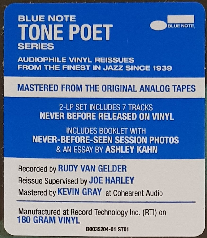 Blue Note Tone Poet Reissue Series on 180gr Vinyl. 2022 Blue Note B0035204-01. Features 7 Never Before Released Tracks on Vinyl