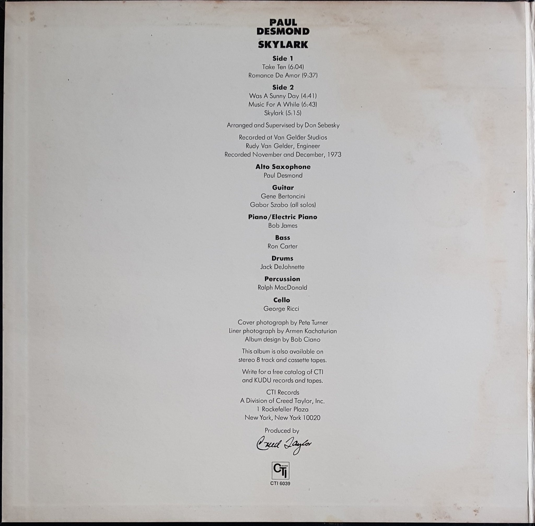 Featuring Gabor Szabo. Gatefold Cover. 1974 CTI Records CTI 6039. Laminated cover is quite clean, however it has cracked and flaked the print on part of the spine. Unsealed board inside of gatefold has foxing.