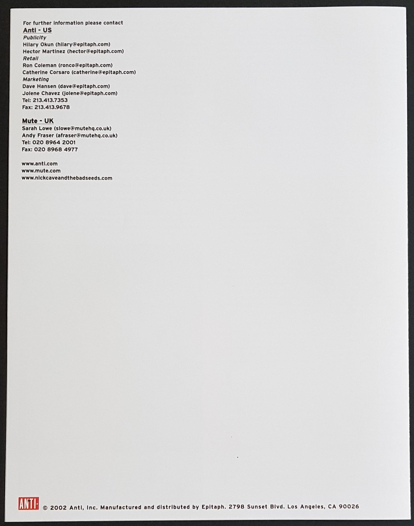 NICK CAVE & THE BAD SEEDS