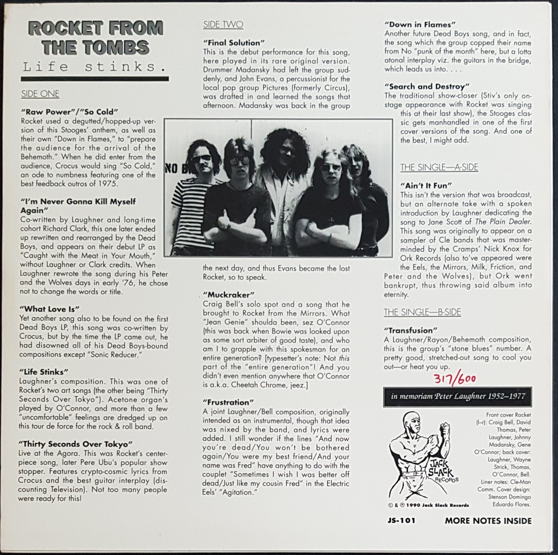 w. 7" (NM) + Insert. # 317 / 600. 1990 Jack Slack Records JS-101. Minor wear and creases on cover. Record is more EX than VG+