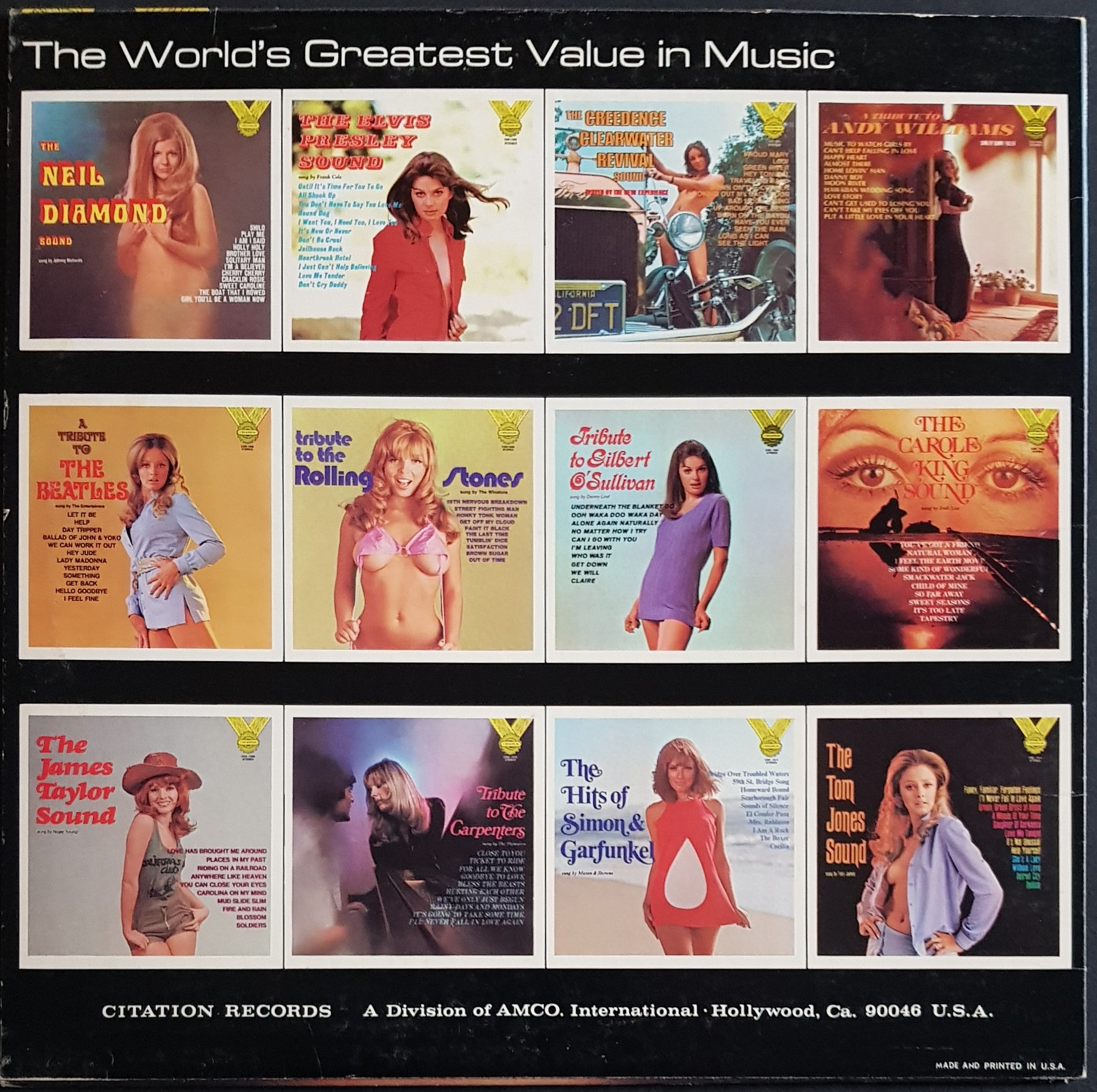 Of 12 Classics Performed by Johnny. 1970's Citation Records CSR-1001. Sexy Nude / Cheesecake Cover. Cover has scuff marks, creases, small price tag stain and corner bumps