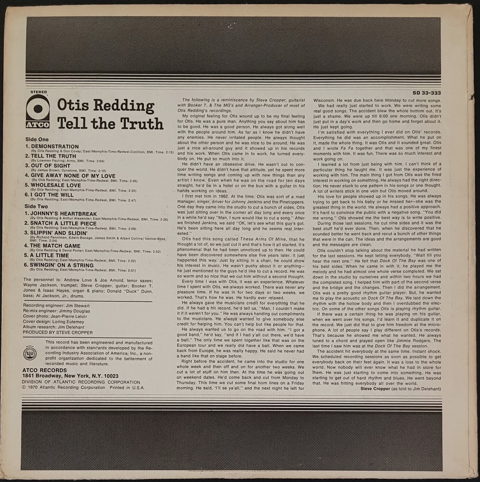 1970 ATCO Records SD 33-333. Cover has surface wear, seam splits, small water stain and deletion cut