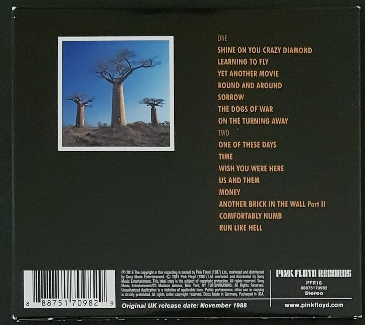 Set in Fold Open Card Cover. 2016 Pink Floyd Records PFR16.
