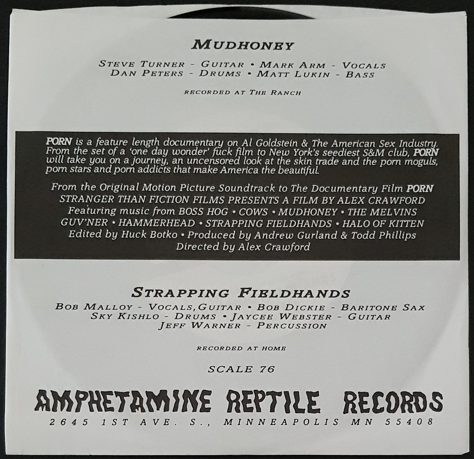 PS. Split Release w.Strapping Fieldhands. 1995 Amphetamine Reptile Records Scale 76. From The Documentary Film ''PORN''. Small price tag stain on sleeve