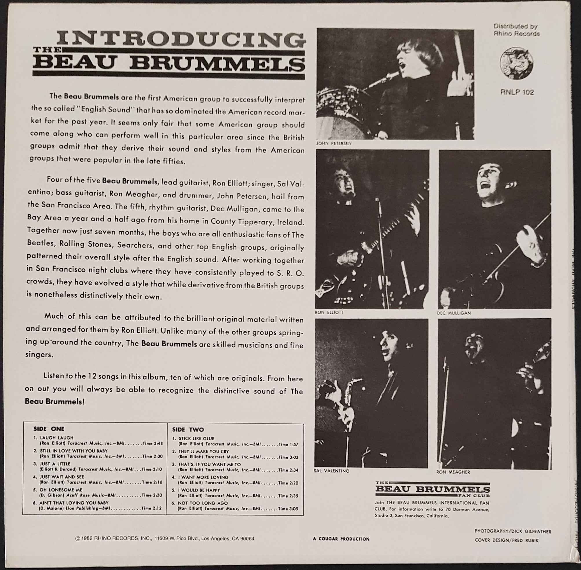 1982 Rhino Records RNLP 102. Corner crease on cover