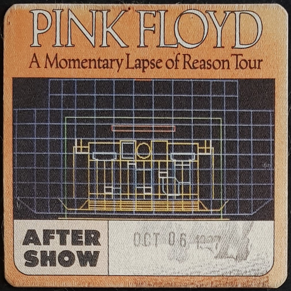 After Show. Orange Cloth Pass. Used, but backing has been salvaged. 8cm x 8cm. Ink Stamped Date Oct 06 1987 for Madison Square Garden Show - New York.