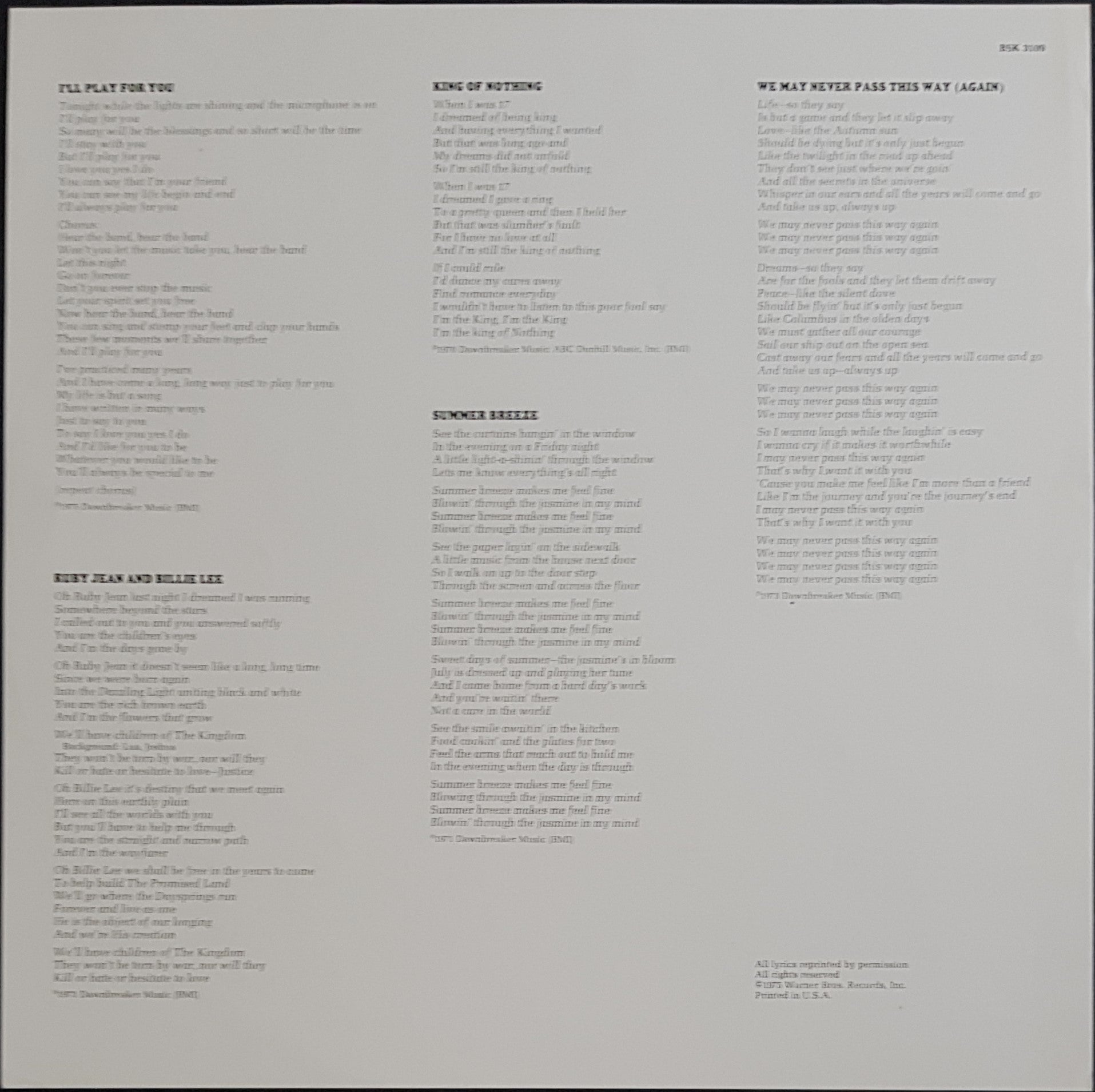 w.Insert. 1977 Warner Bros. BSK 3109.